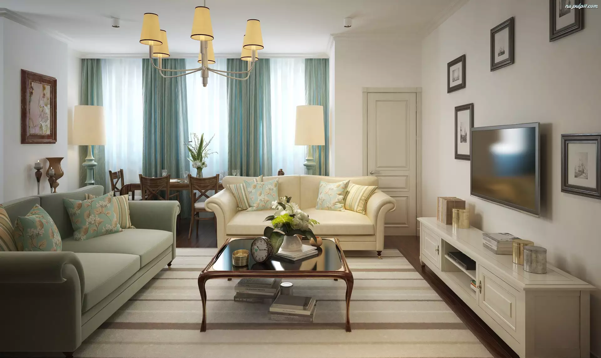 Komoda, Telewizor, Kanapy, Pokój, Lampy