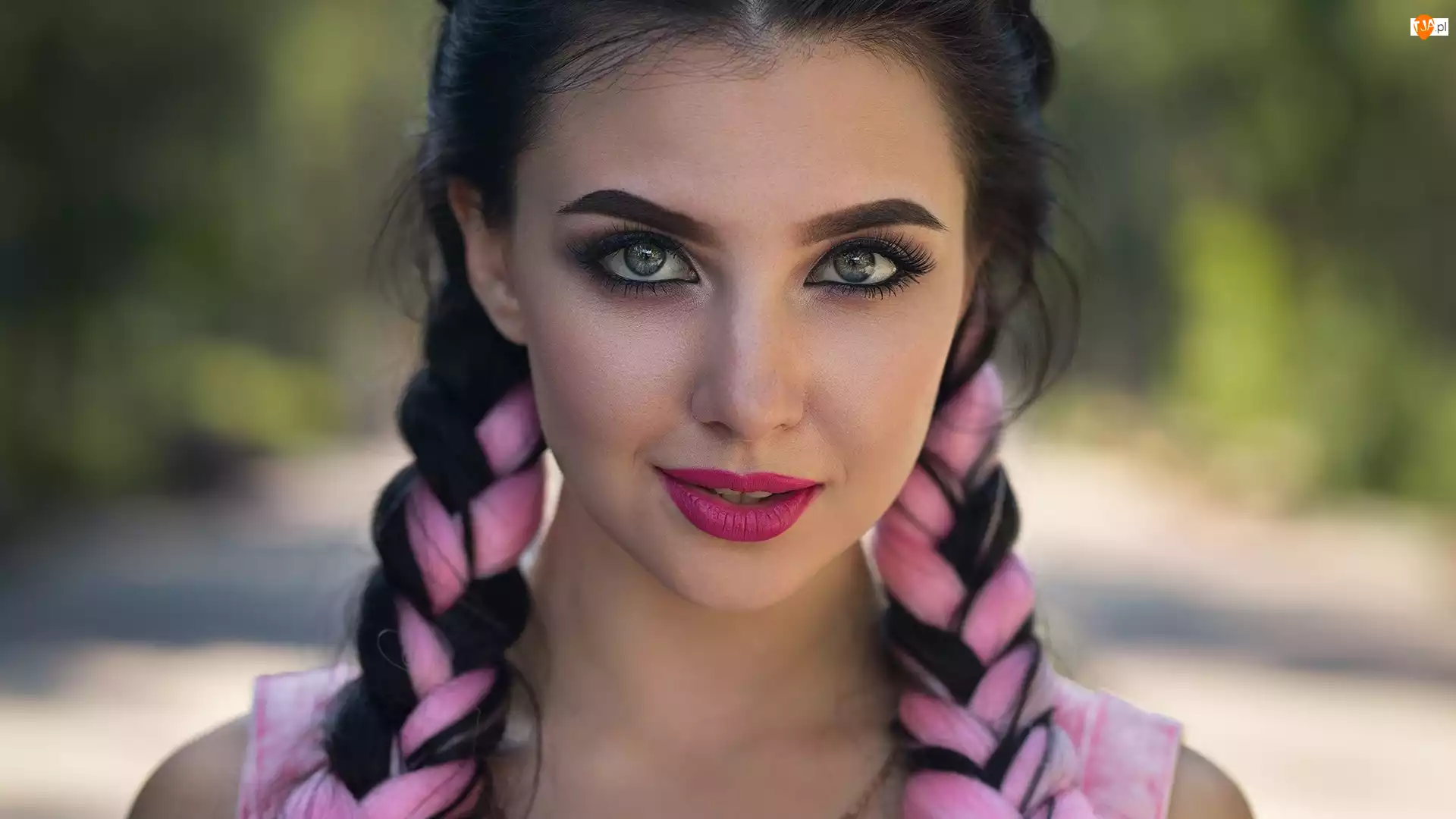 Modelka, Warkocze, Kristina Romanova, Dziewczyna, Makijaż