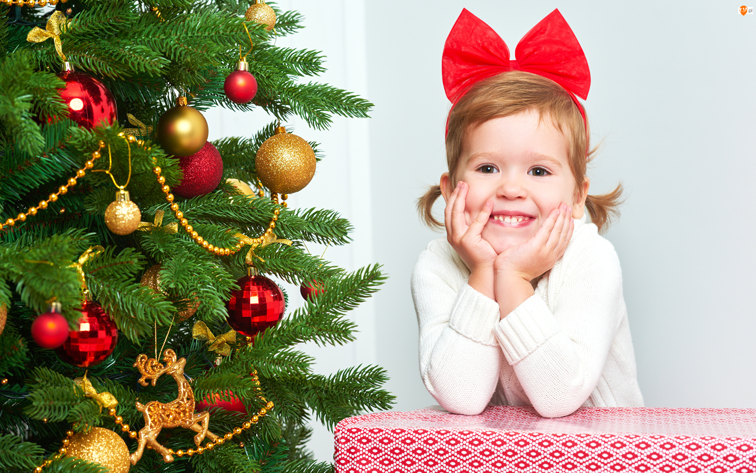 Boże Narodzenie, Choinka, Dziewczynka, Prezent