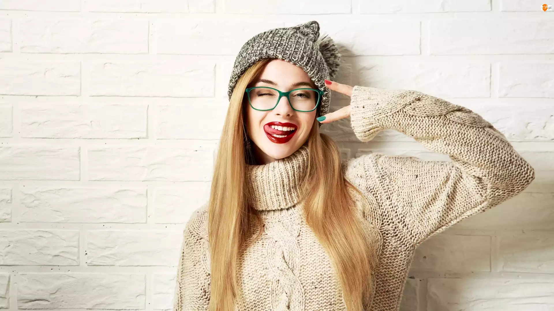 Czapka, Uśmiech, Blondynka, Kobieta, Okulary