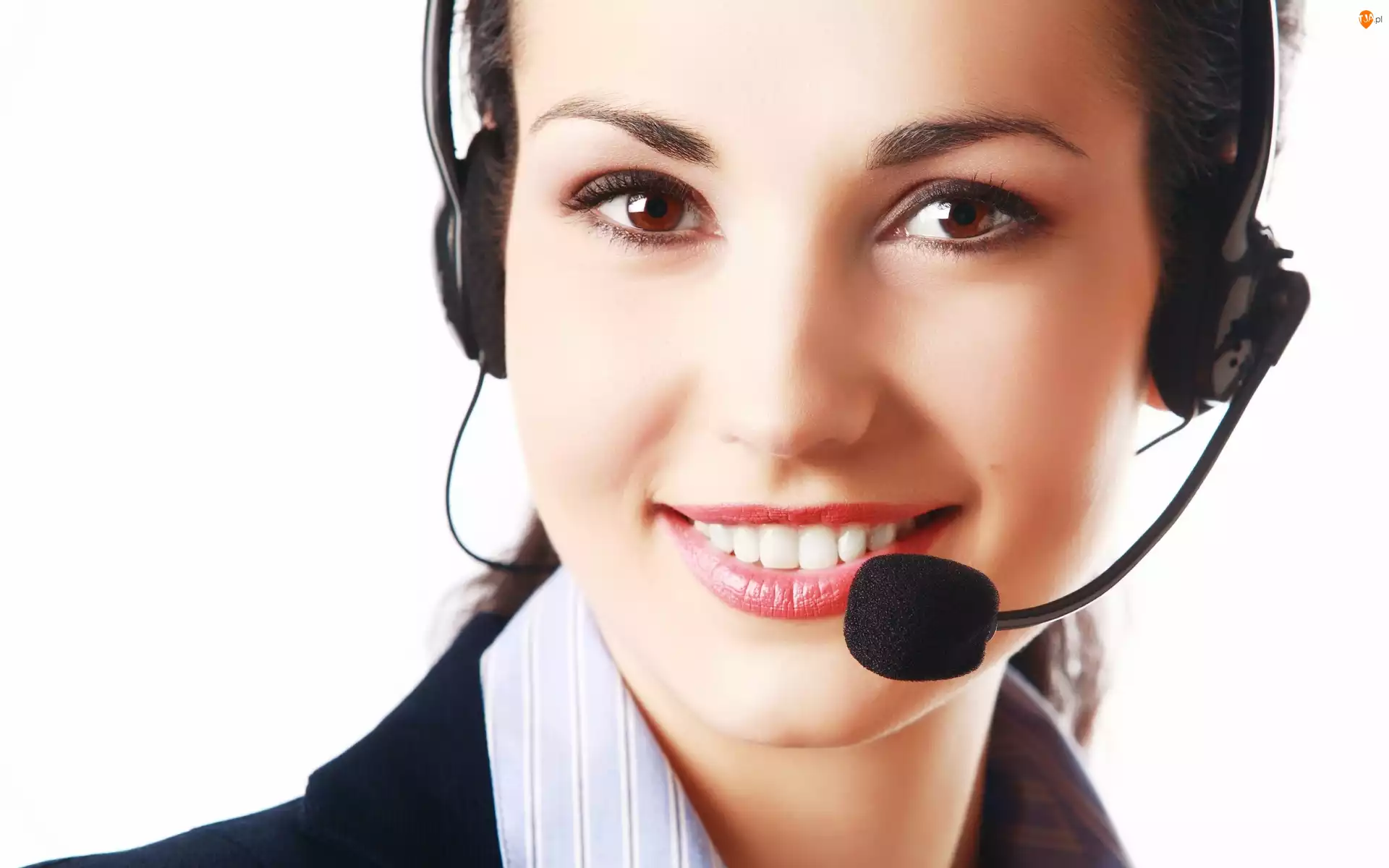 Uśmiechnięta, Makijaż, Kobieta, Słuchawki