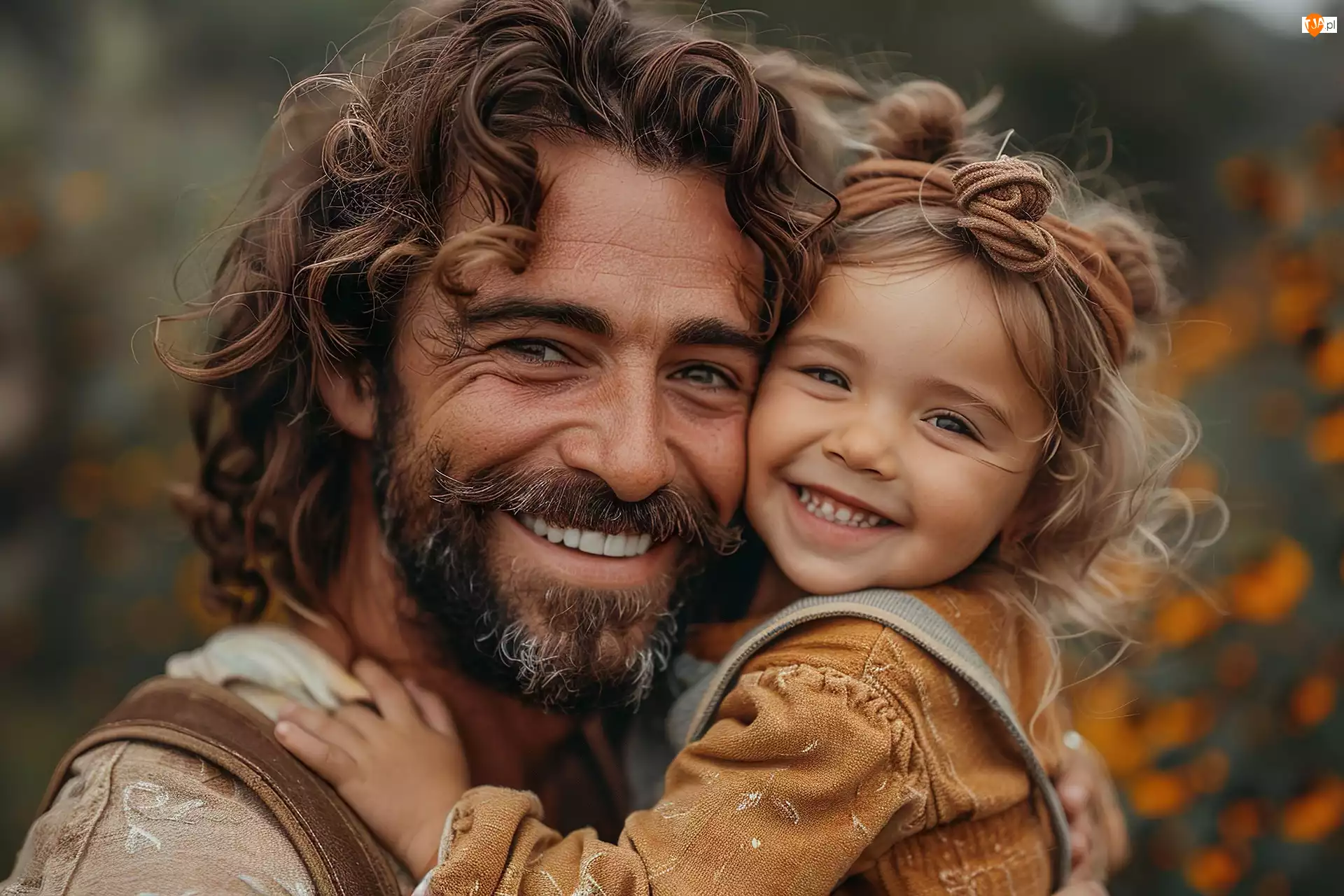 Uśmiechy, Córka, Dziewczynka, Mężczyzna, Ojciec