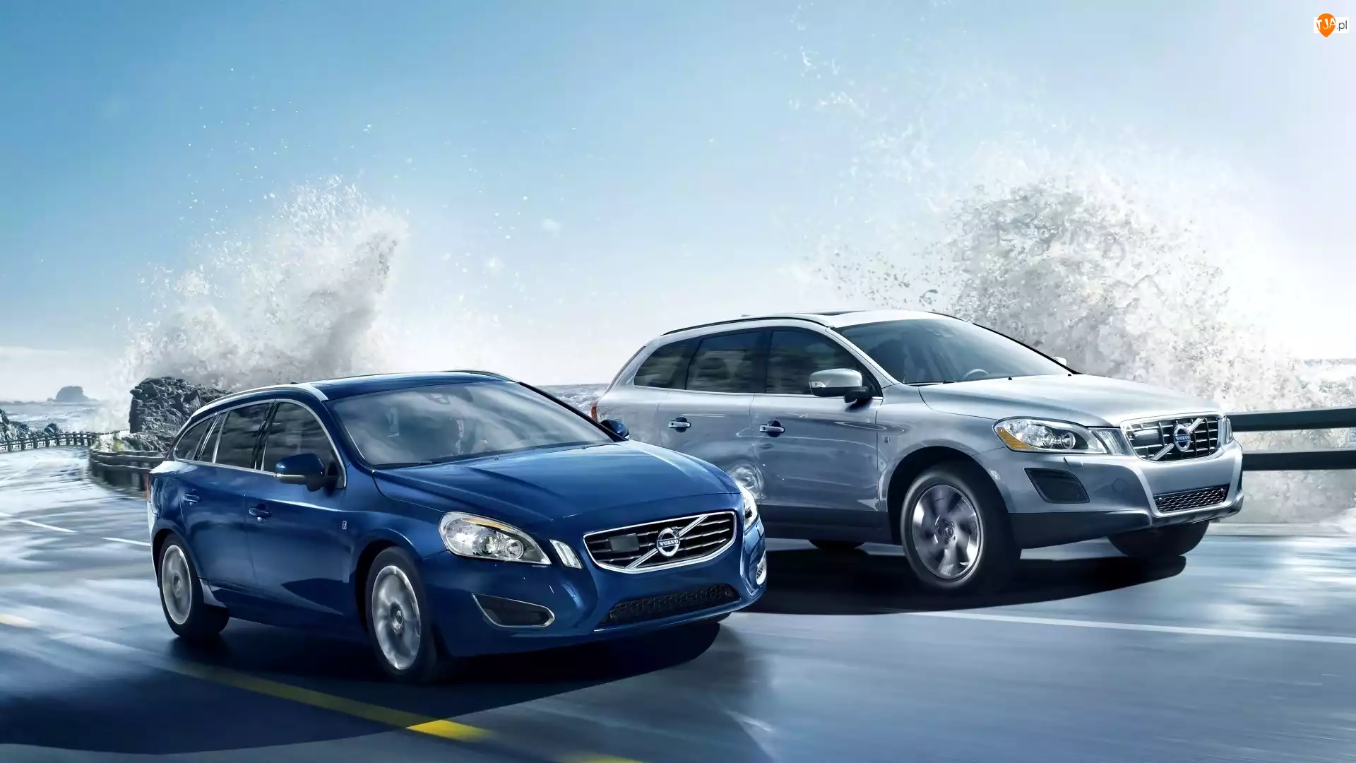 Volvo, Woda, Dwa, Droga, Samochody, Rozbryzgująca