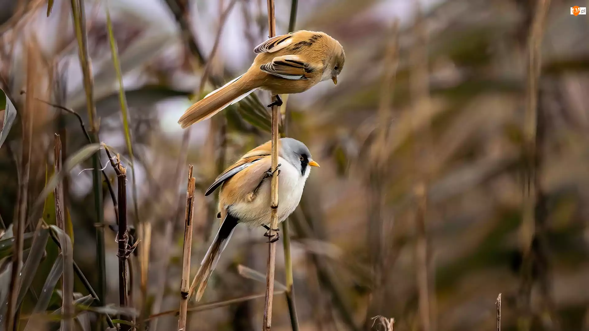 Wąsatki, Trzcina, Ptaki, Dwa, Sucha