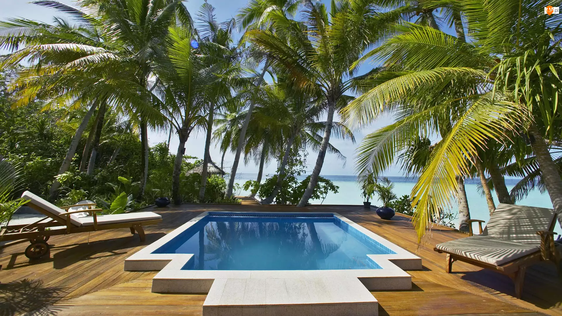 Basen, Wakacje, Palmy, Hotel, Leżaki