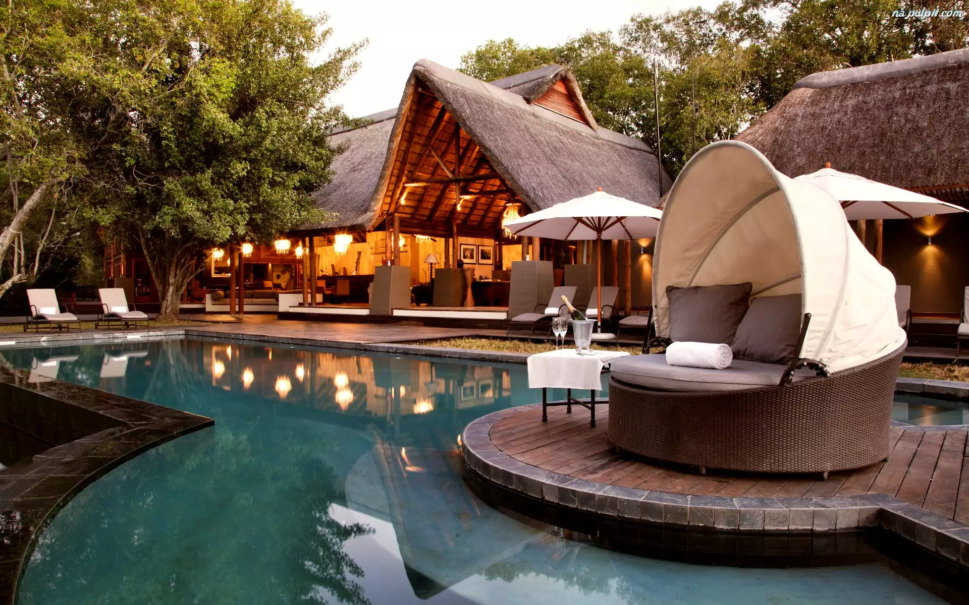 Wakacje, Hotel, Leżaki, Basen, Kurort