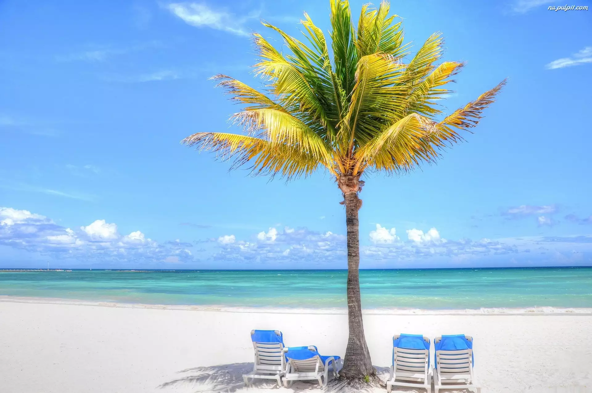 Wakacje, Morze, Leżaki, Palma, Plaża