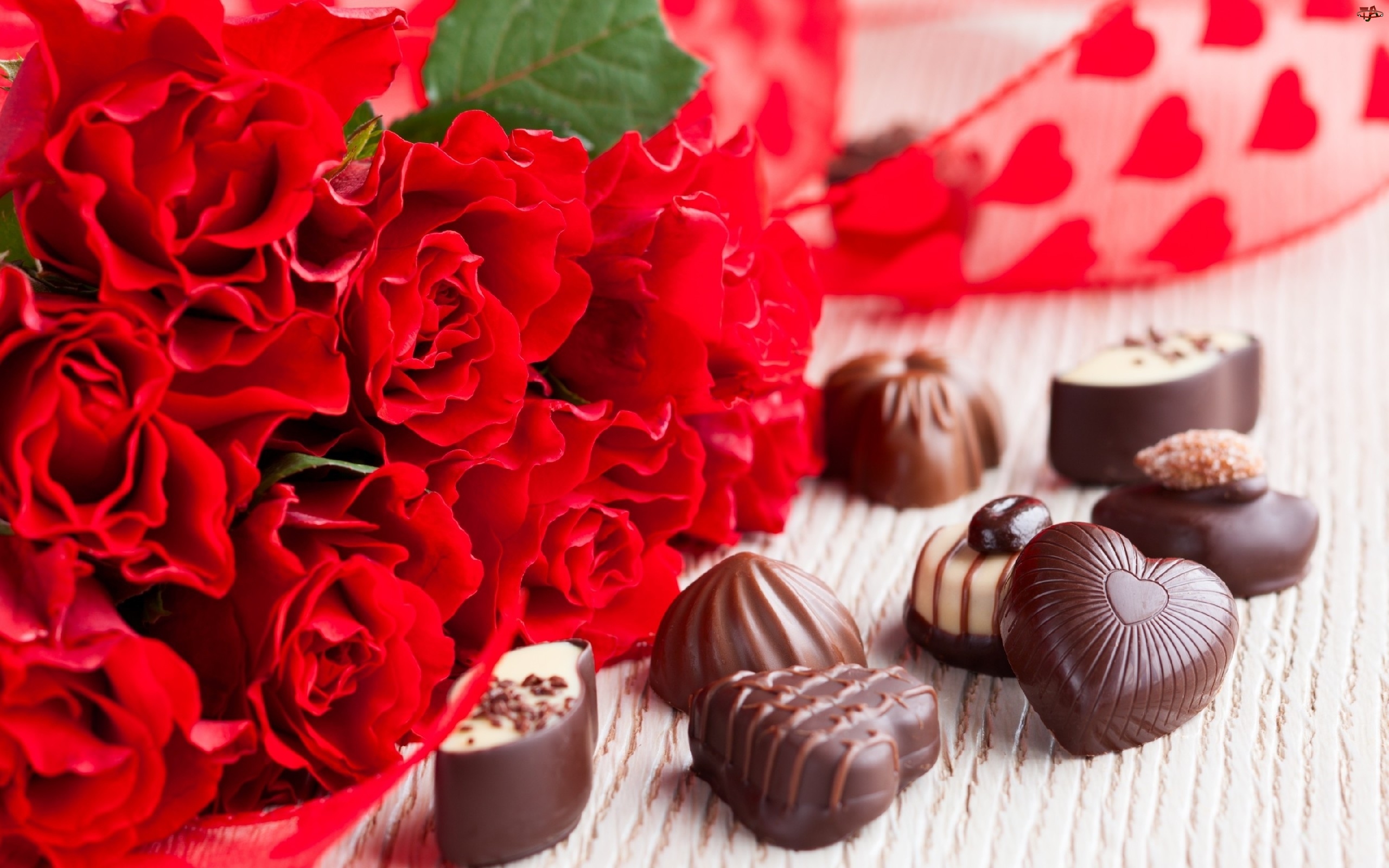 Walentynki, Czekoladki, Bukiet, Róż