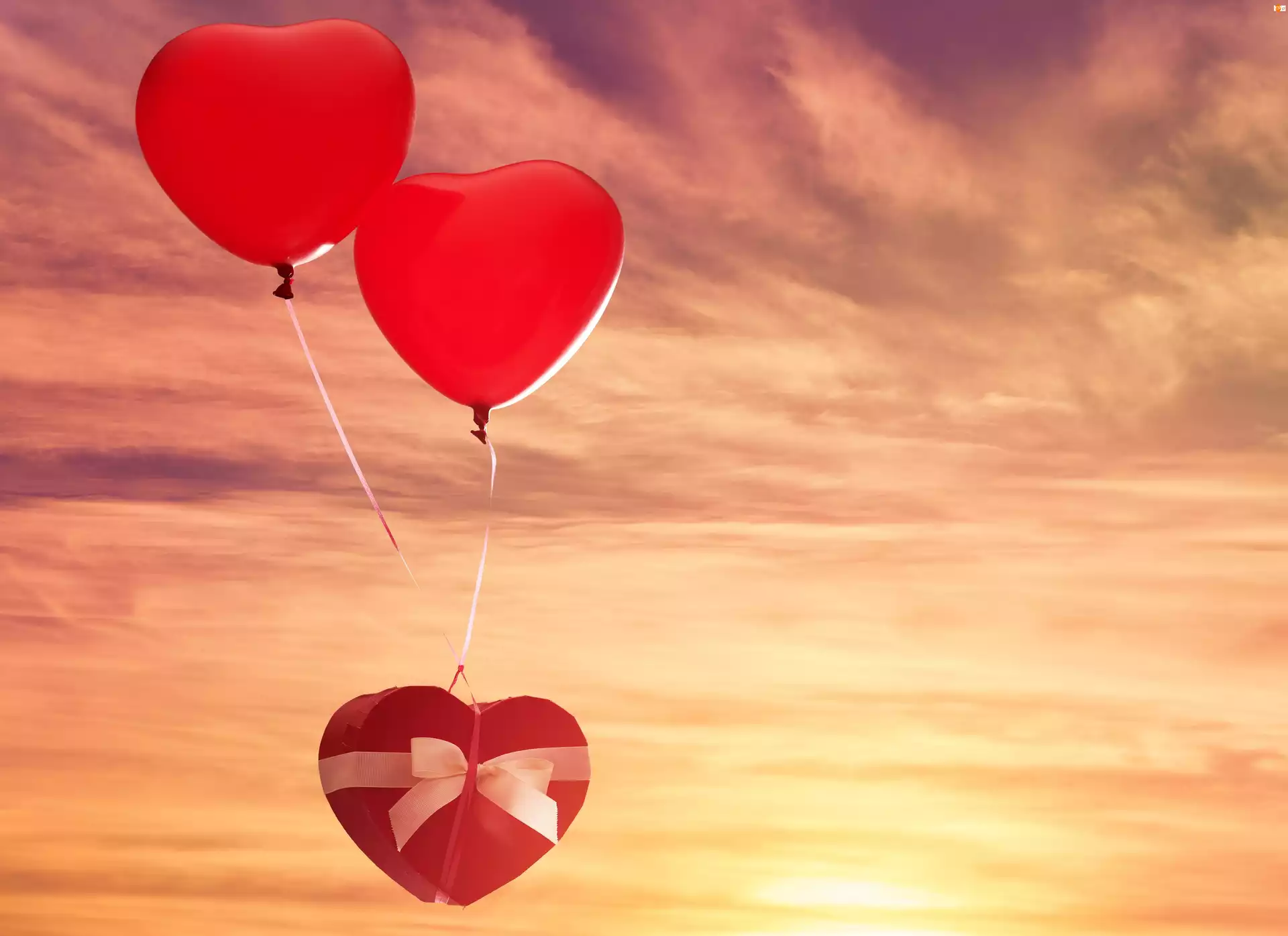 Walentynki, Niebo, Balony, Serca