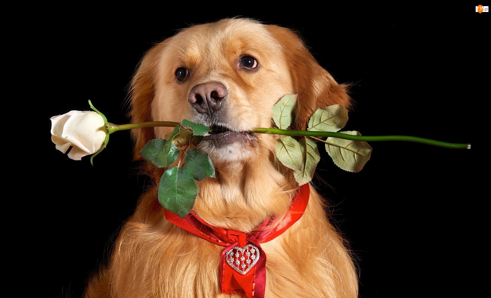 Walentynki, Pies, Róża, Biała, Serduszko