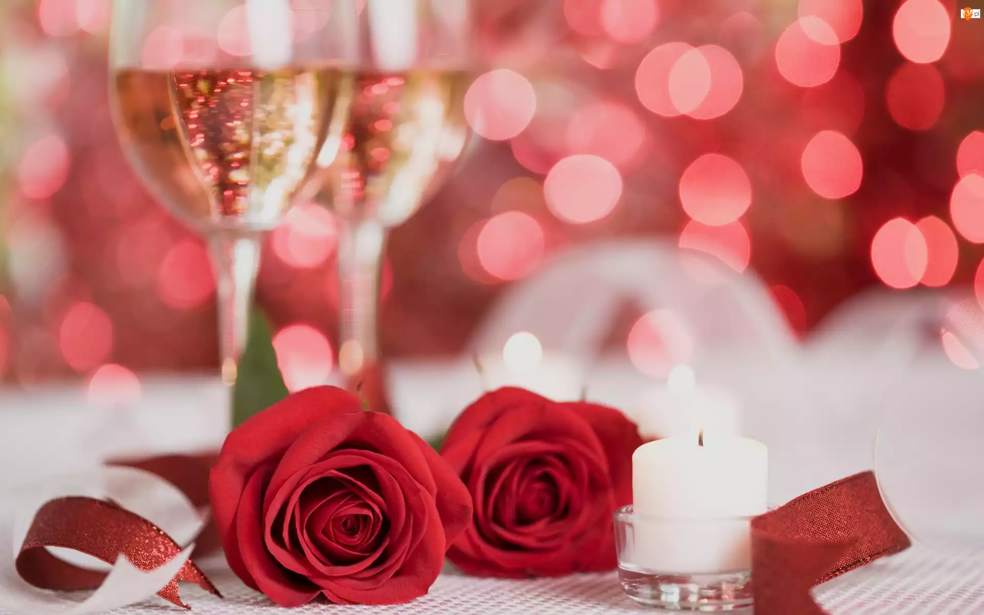 Walentynki, Świeca, Róże, Szampan