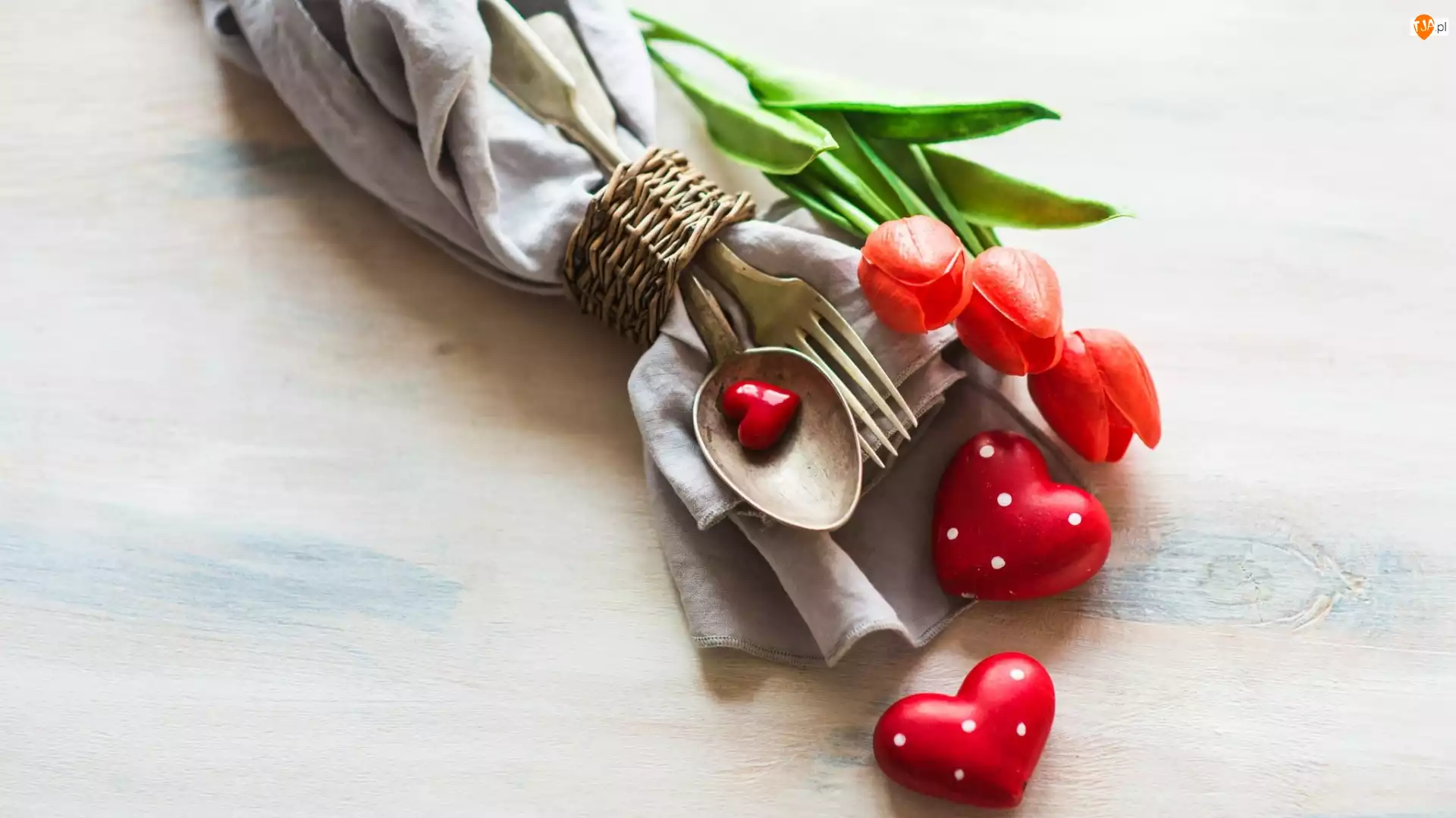 Serwetka, Tulipany, Sztućce, Serca, Bukiet