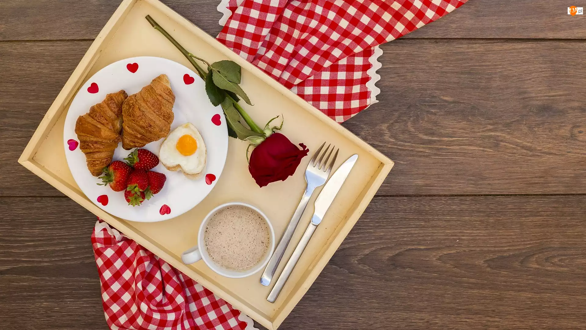 Walentynkowe śniadanie na tacy
