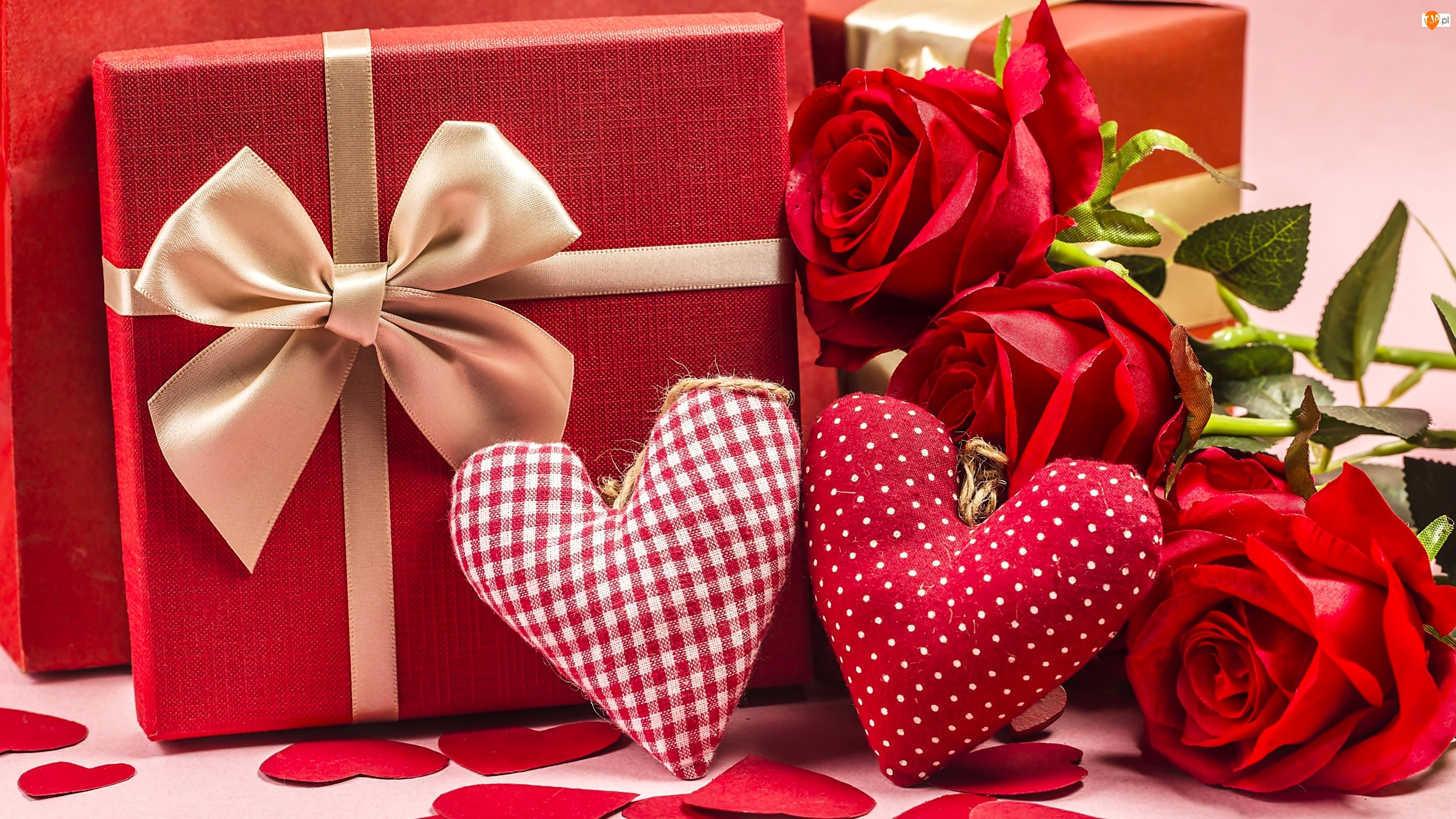 Wstążka, Róże, Walentynki, Prezent, Serca