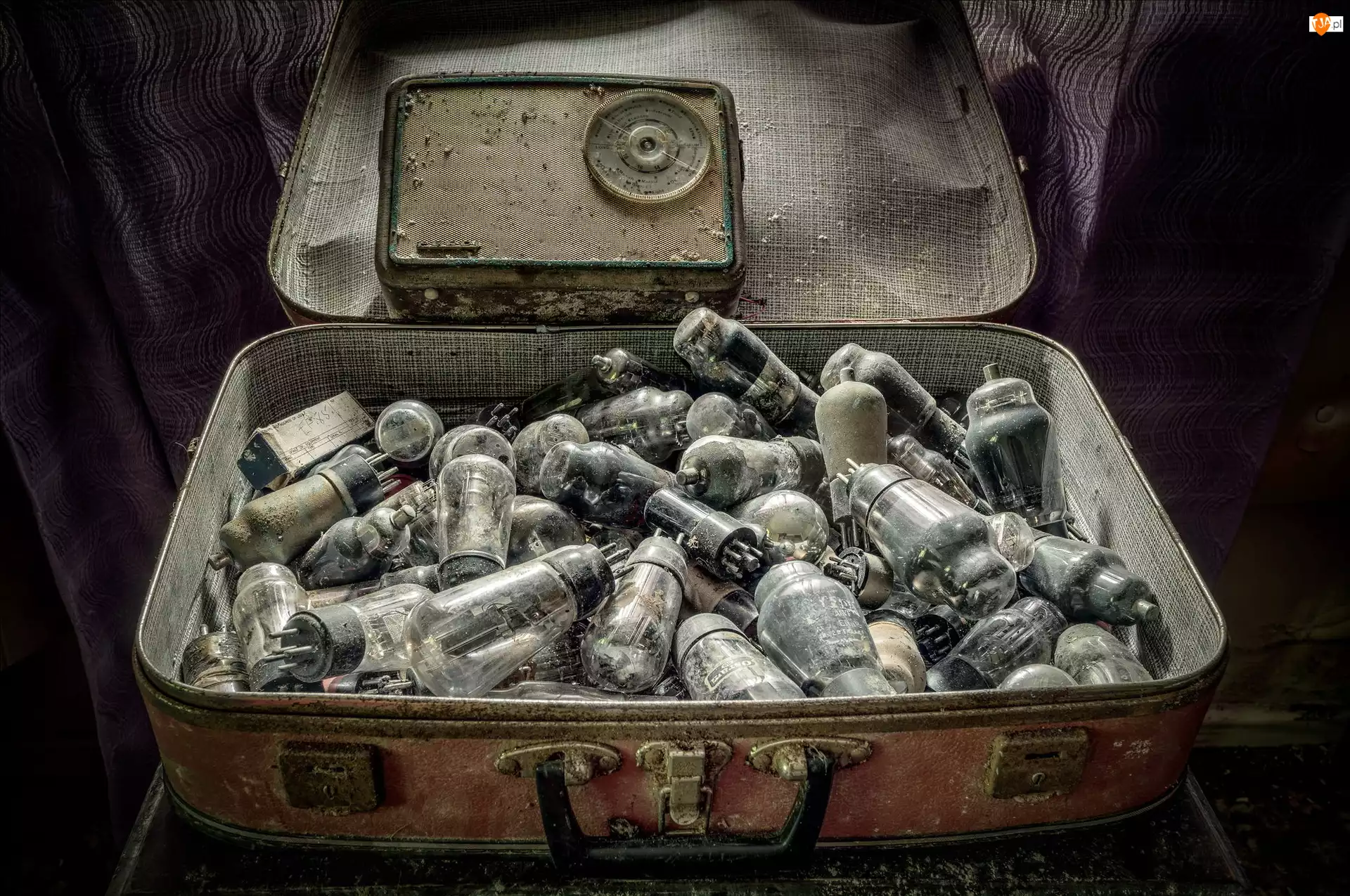 Walizka z żarówkami i radiem
