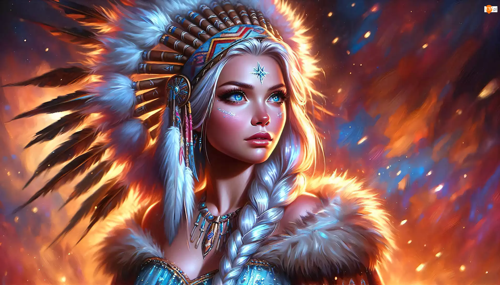 Warkocz, Grafika, Blondynka, Kobieta, Pióropusz