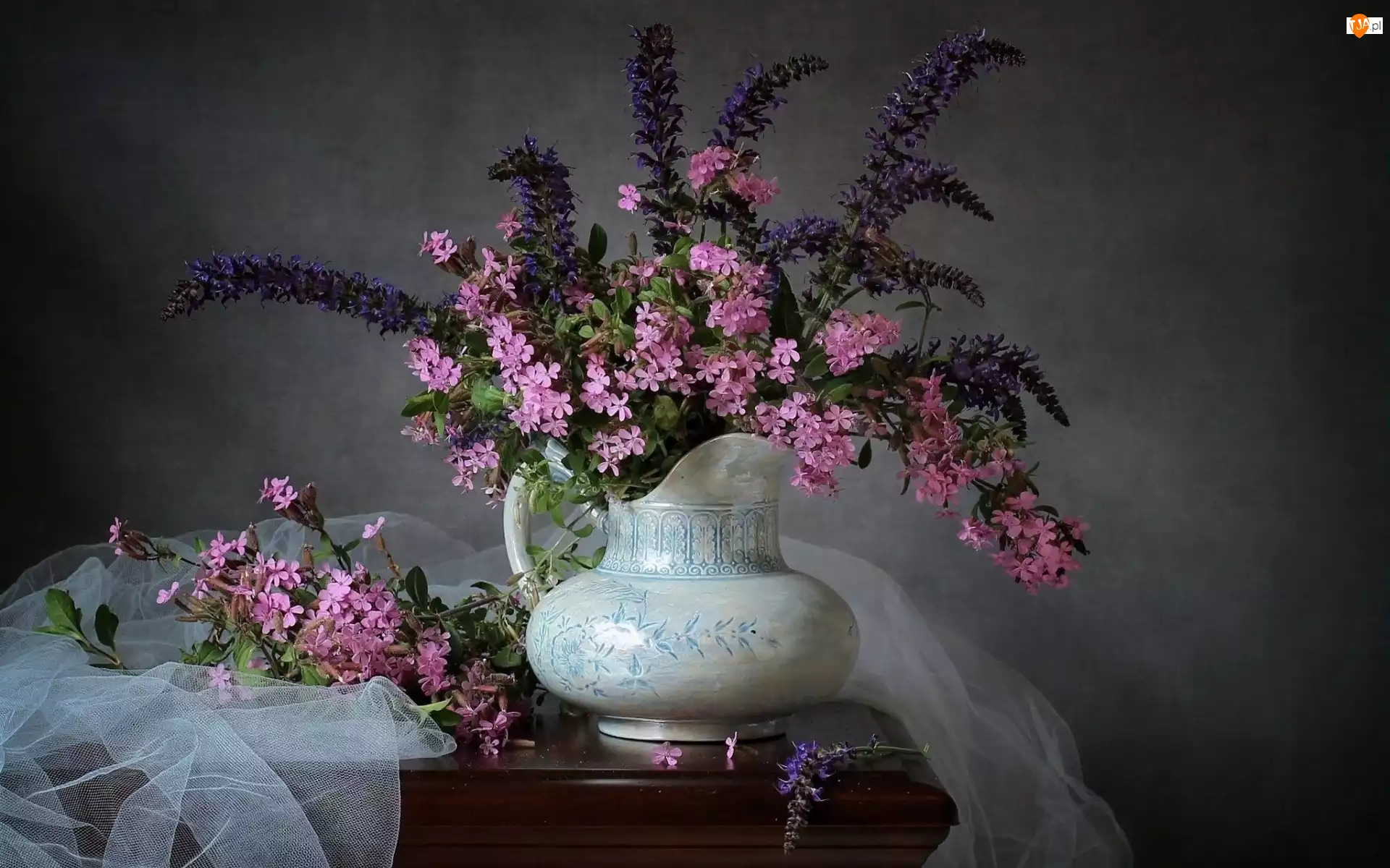 Waza, Komoda, Bukiet, Kwiaty, Tiul