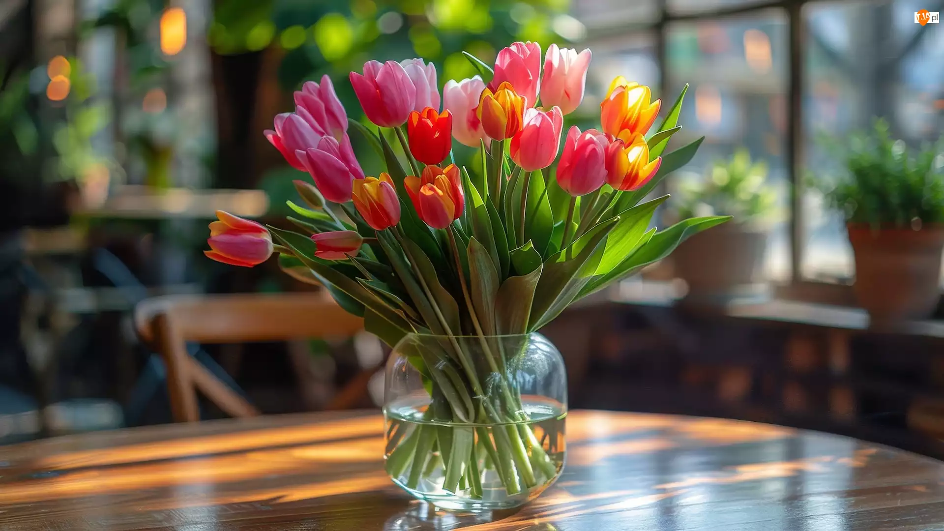 Wazon, Kwiaty, Tulipany, Kolorowe