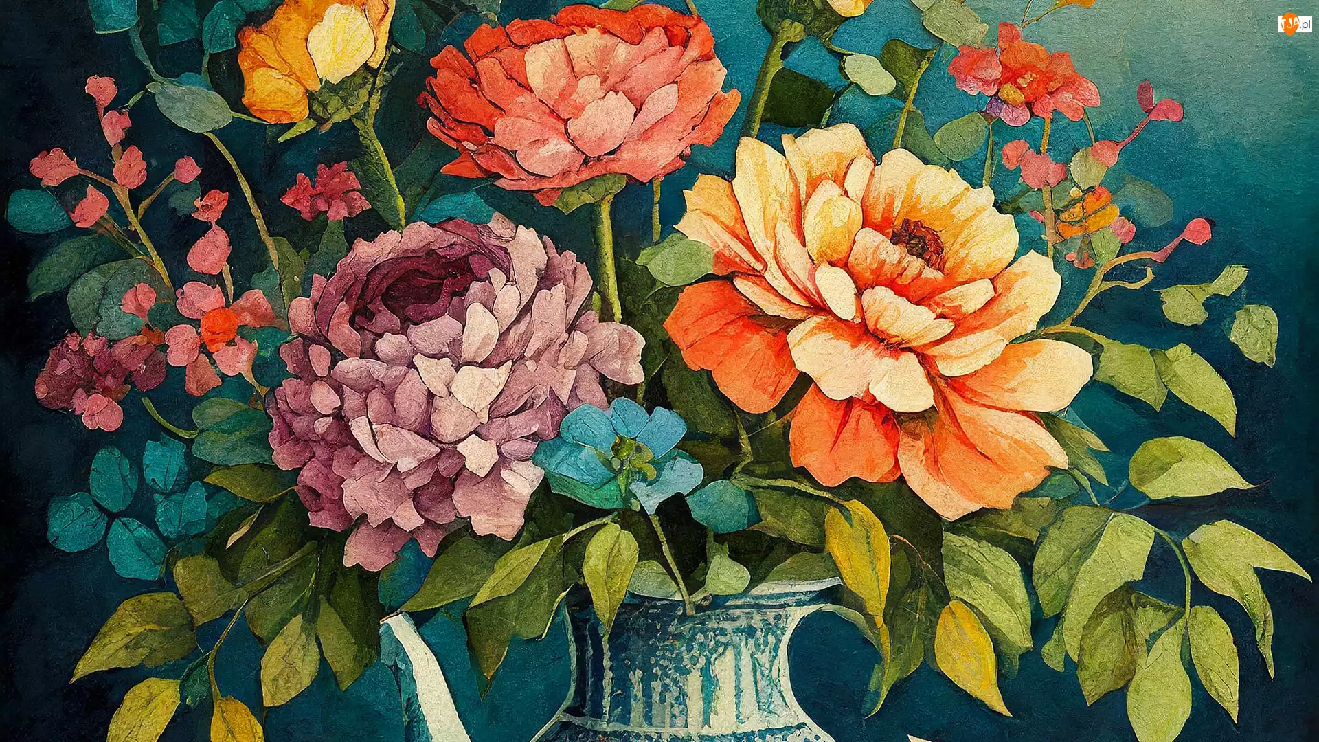 Wazon, Obraz, Malarstwo, Bukiet kwiatów