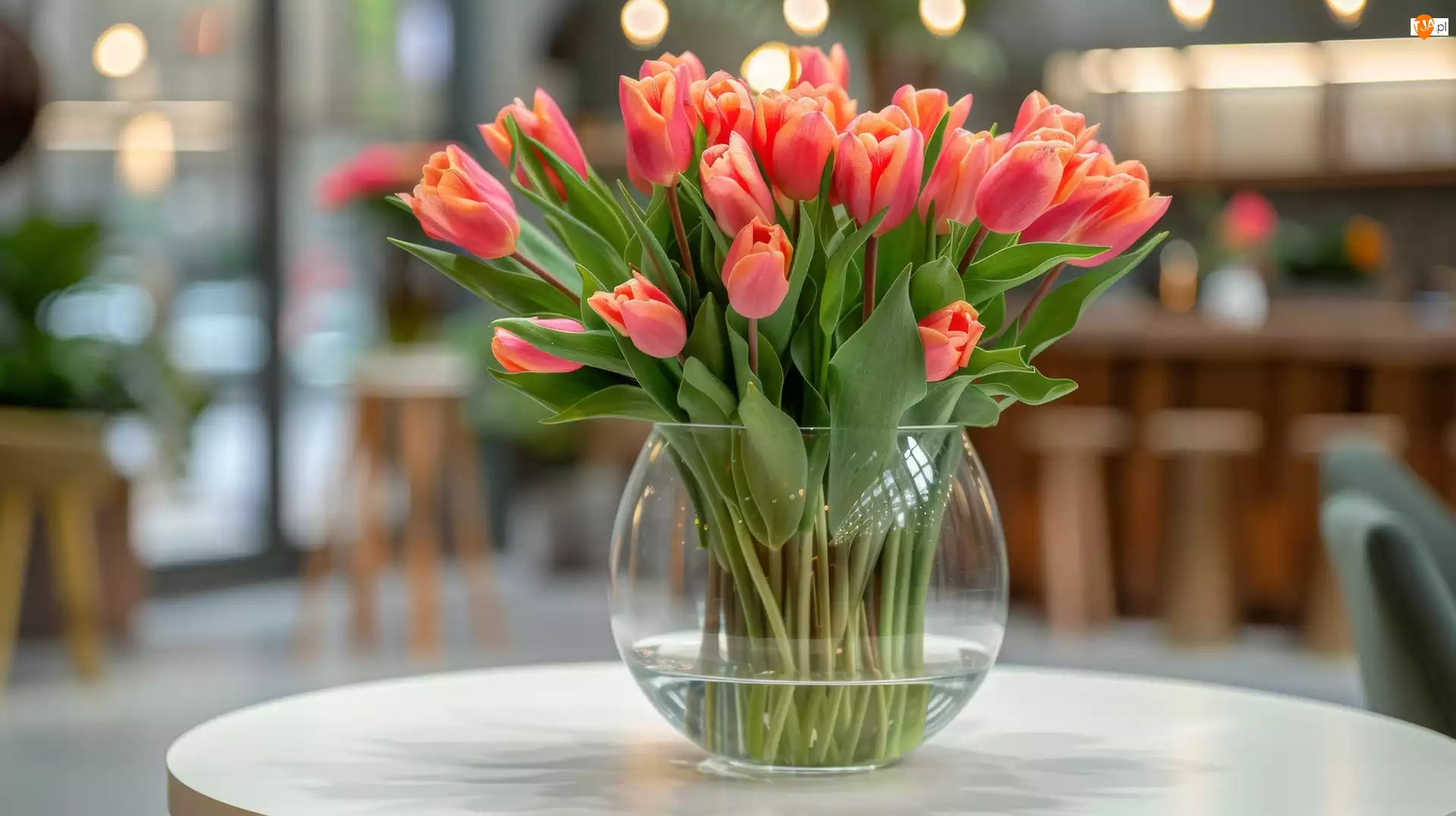Wazon, Różowe, Tulipany, Szklany
