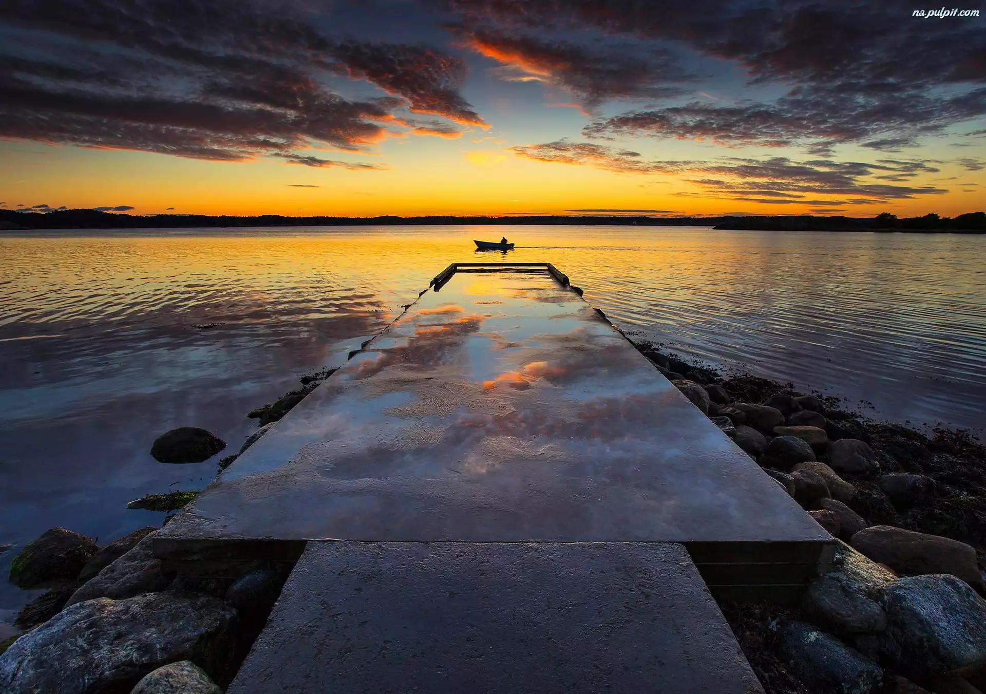 Wędkarz, Zachód, Pomost, Słońca, Jezioro