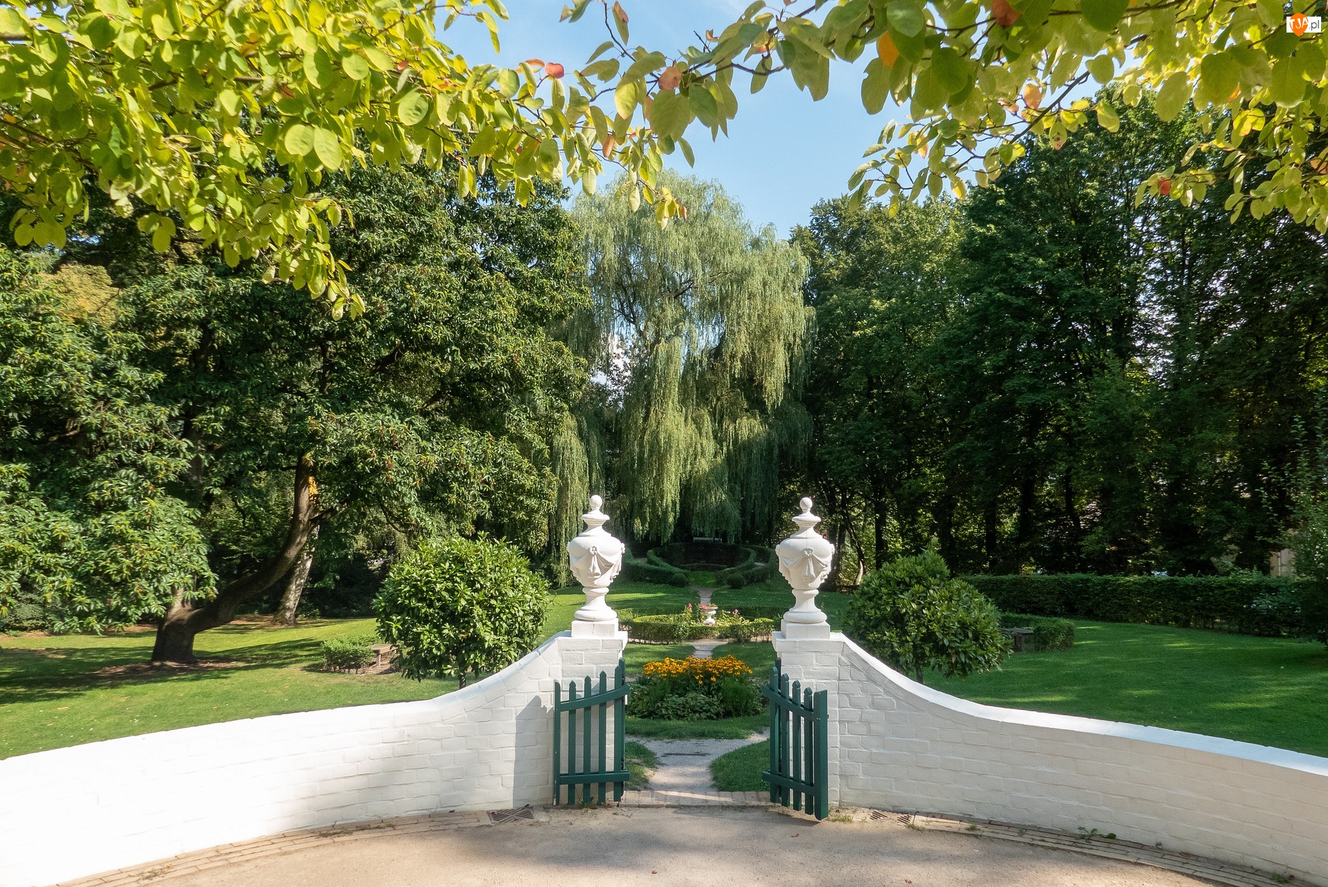 Wejściew białym murku do parku