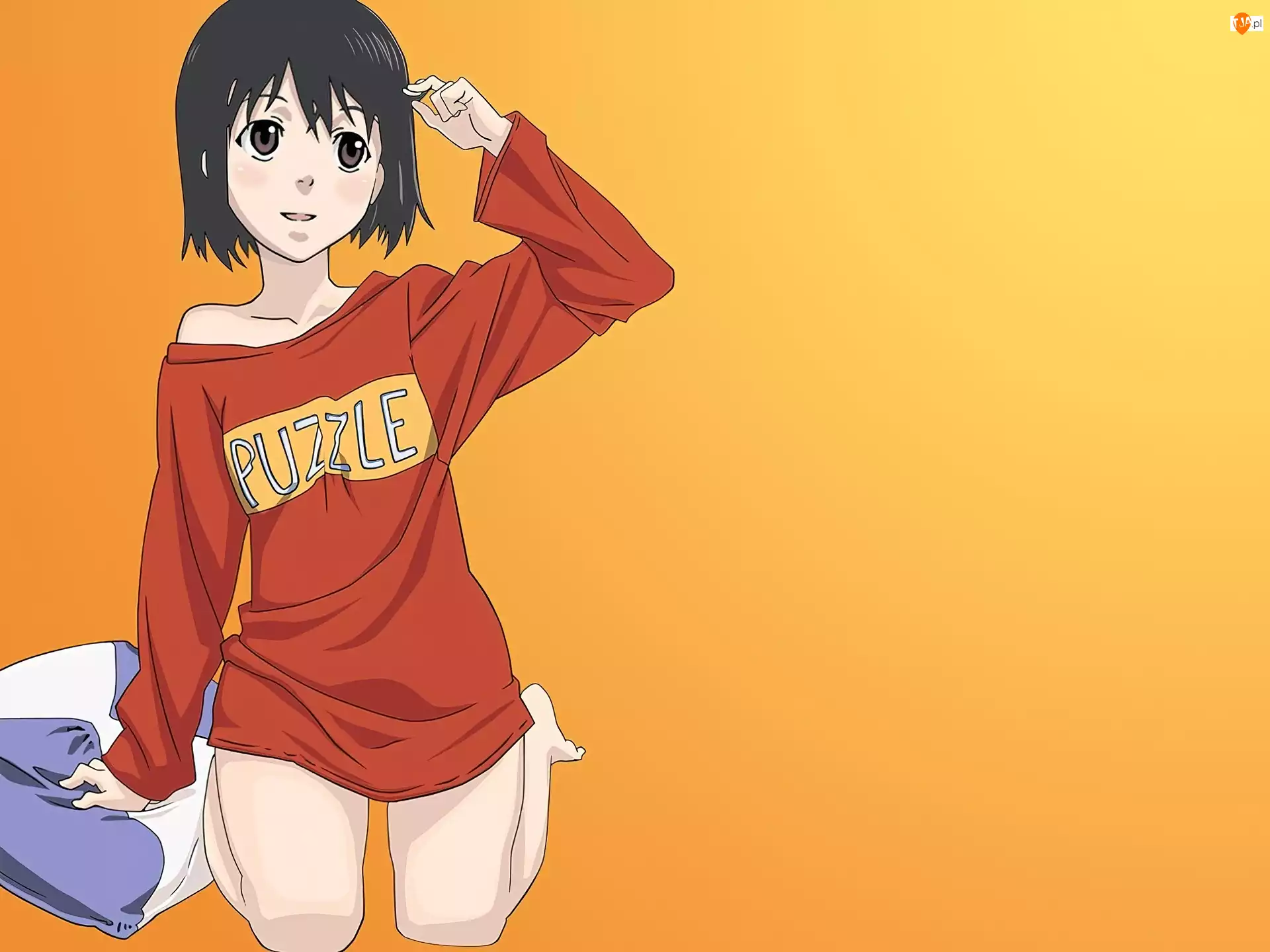 poduszka, Welcome To Nhk, dziewczyna, klęczy