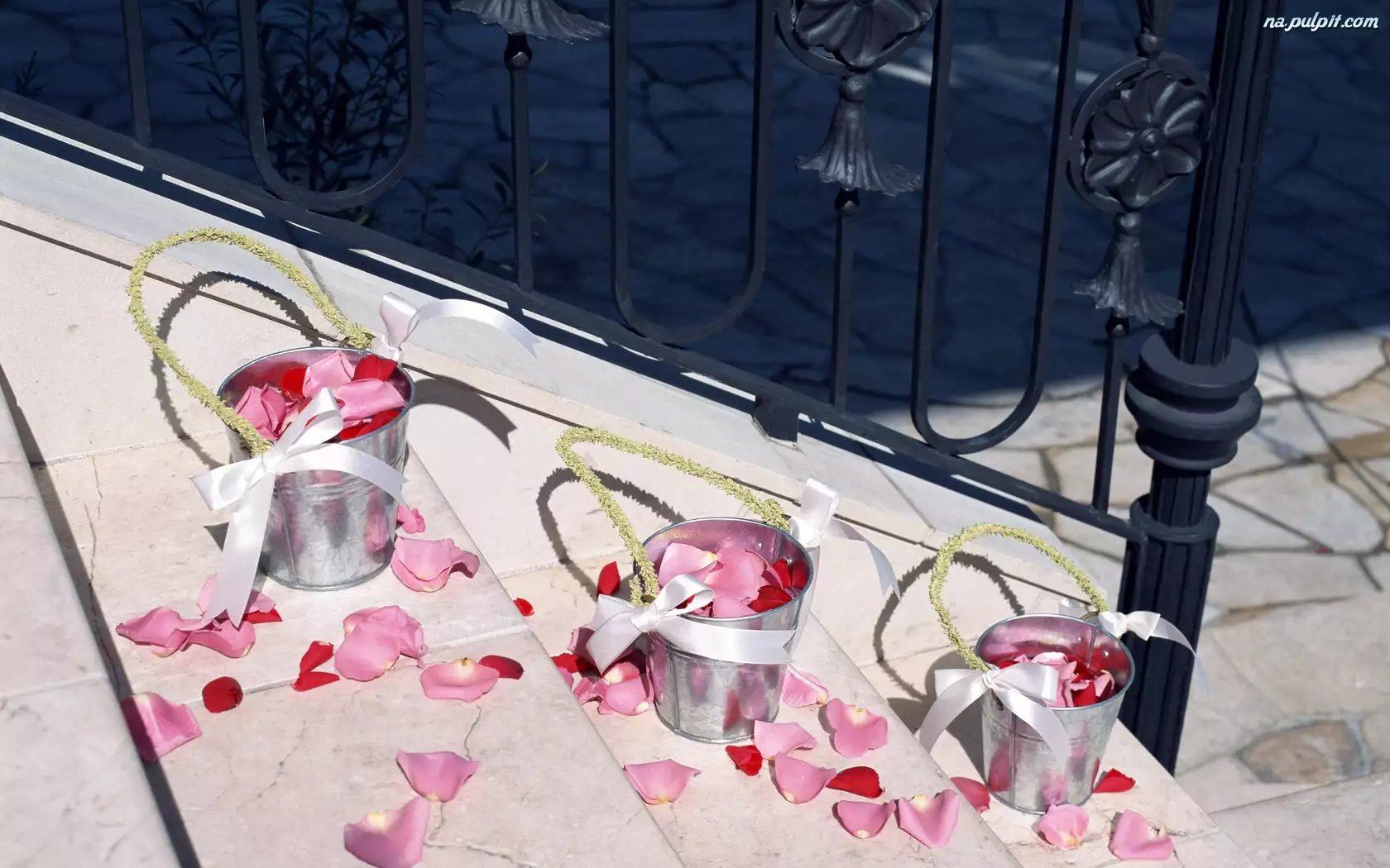 Wiaderka, Róż, Dom, Walentynki, Schody, Płatki