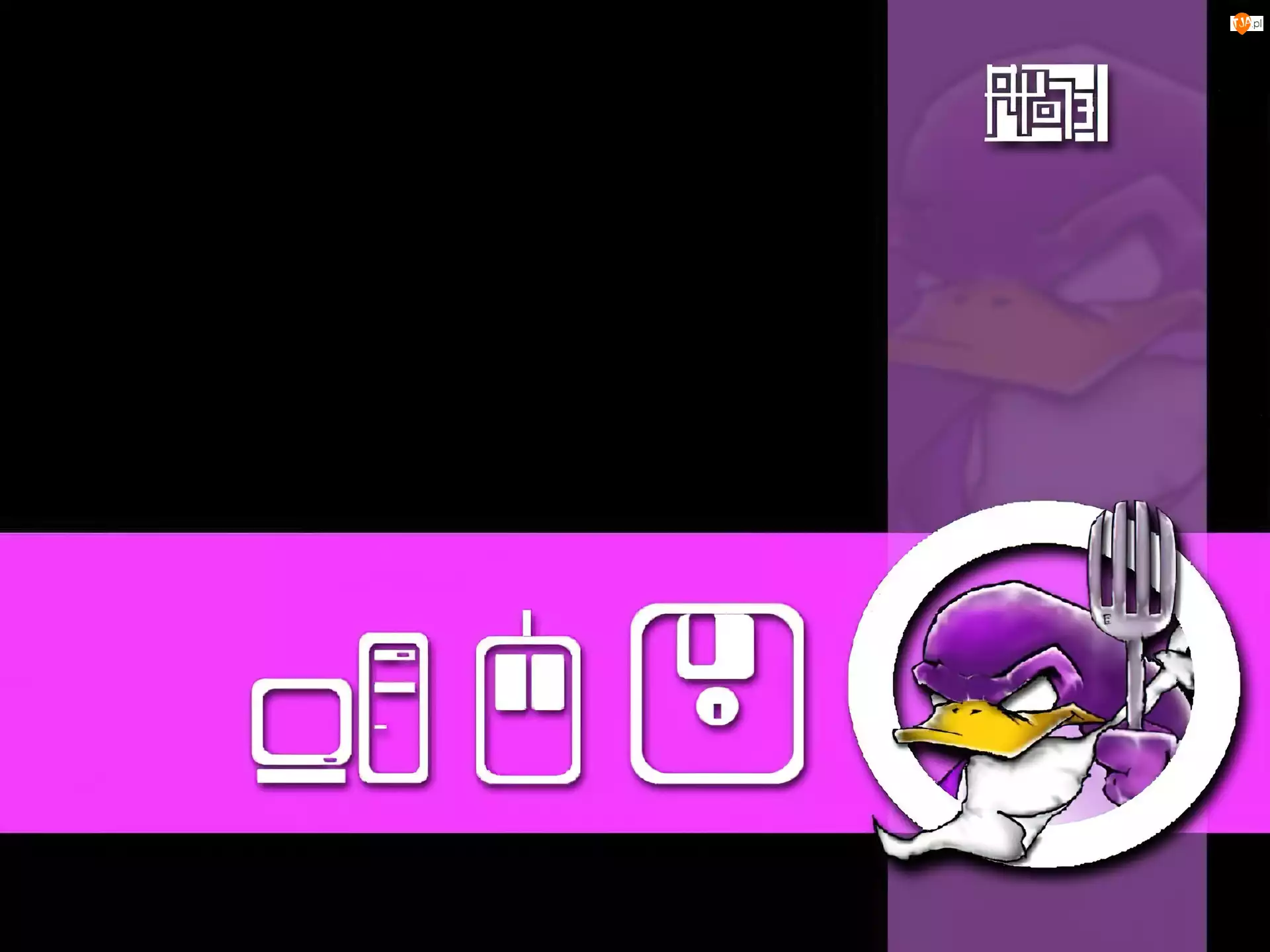 widelec, kaczka, myszka, komputer, Linux, dyskietk