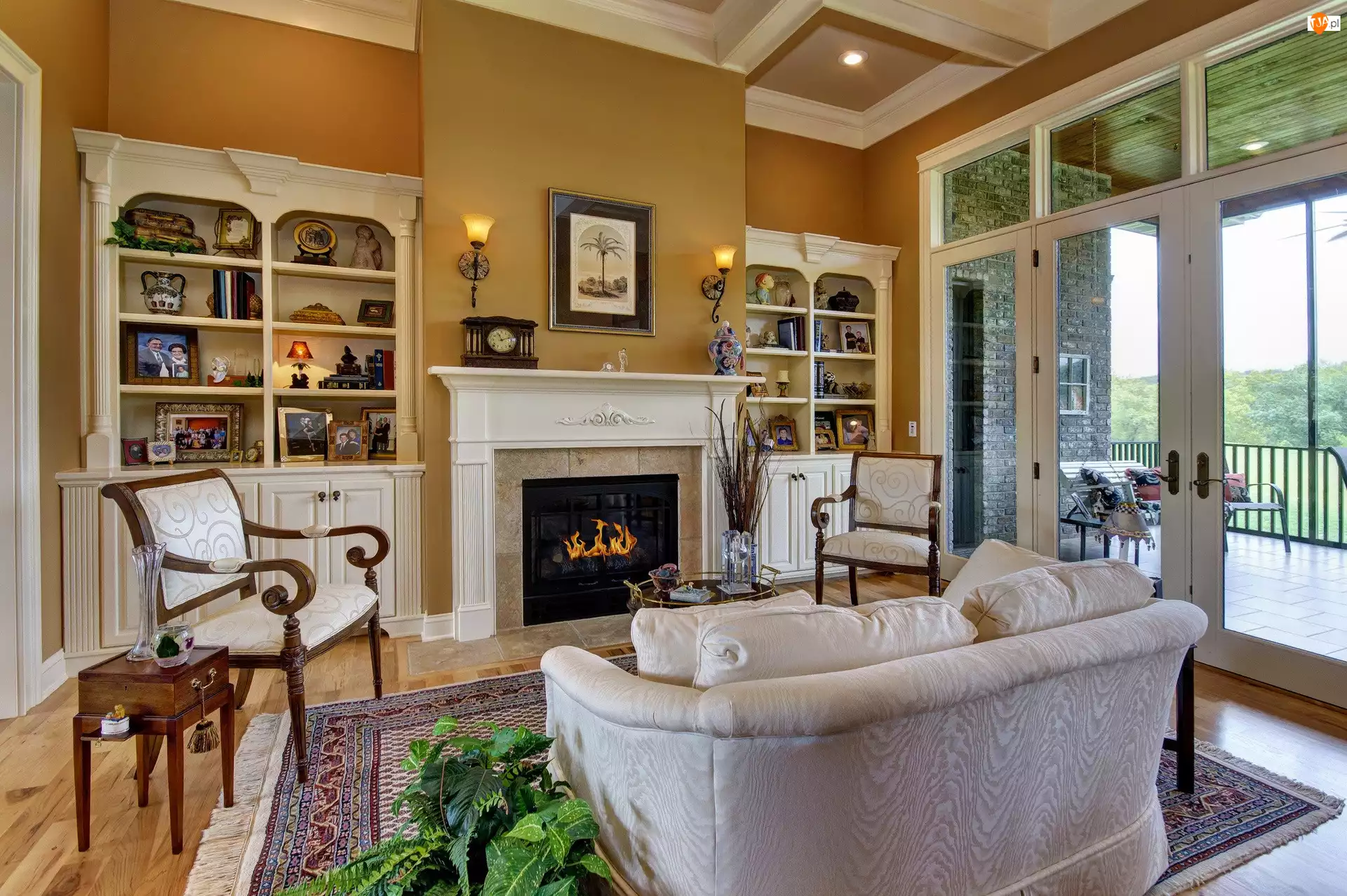 Taras, Salon, Kanapa, Okno, Sofa, Fotele, Widok, Kominek