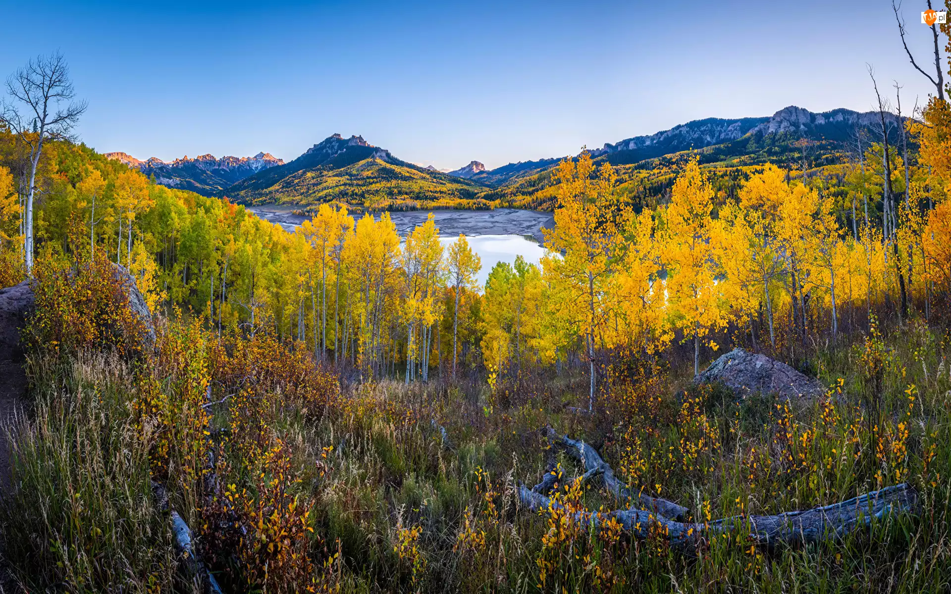 Las, Stany Zjednoczone, Owl Creek Pass, Drzewo, Kolorado, Góry, Jesień, Silver Jack Reservoir