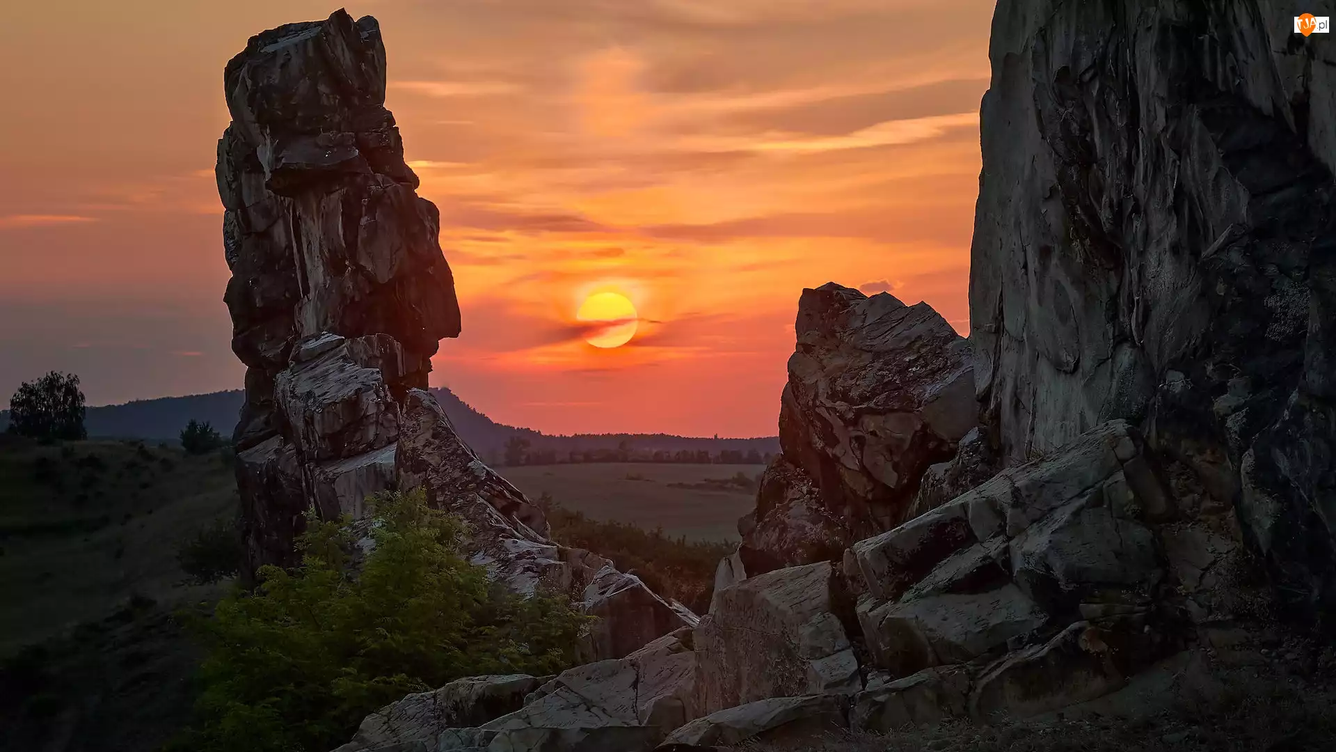 Skały, Formacja skalna, Niemcy, Wschód słońca, Saksonia-Anhalt, Okręg Harz, Teufelsmauer