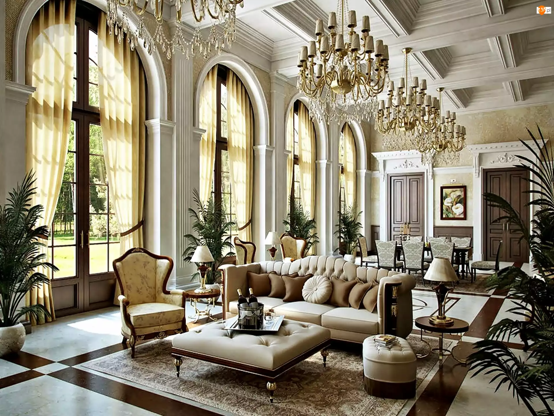 Widok, Wnętrze, Salon, Luksusowy, Okna