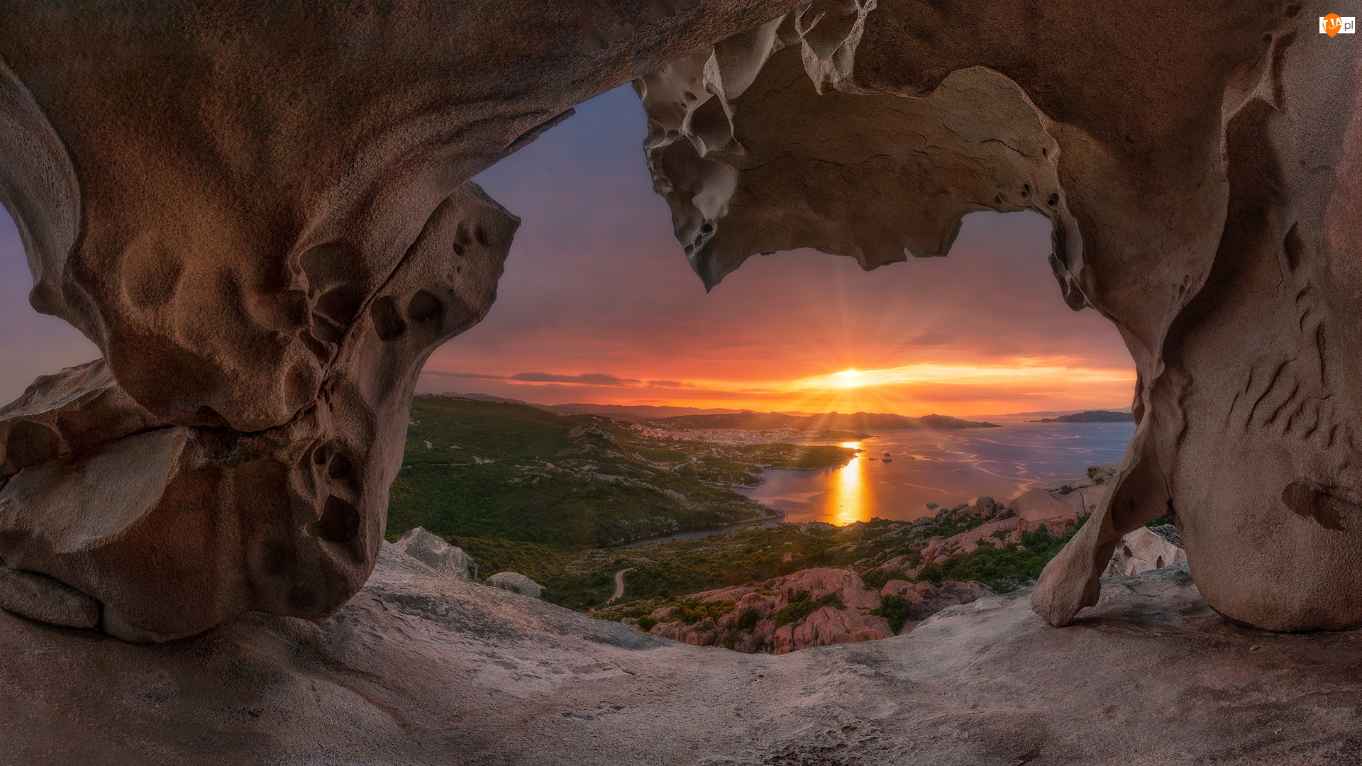 Morze, Zachód słońca, Włochy, Skały, Sardynia, Palau, Capo dOrso