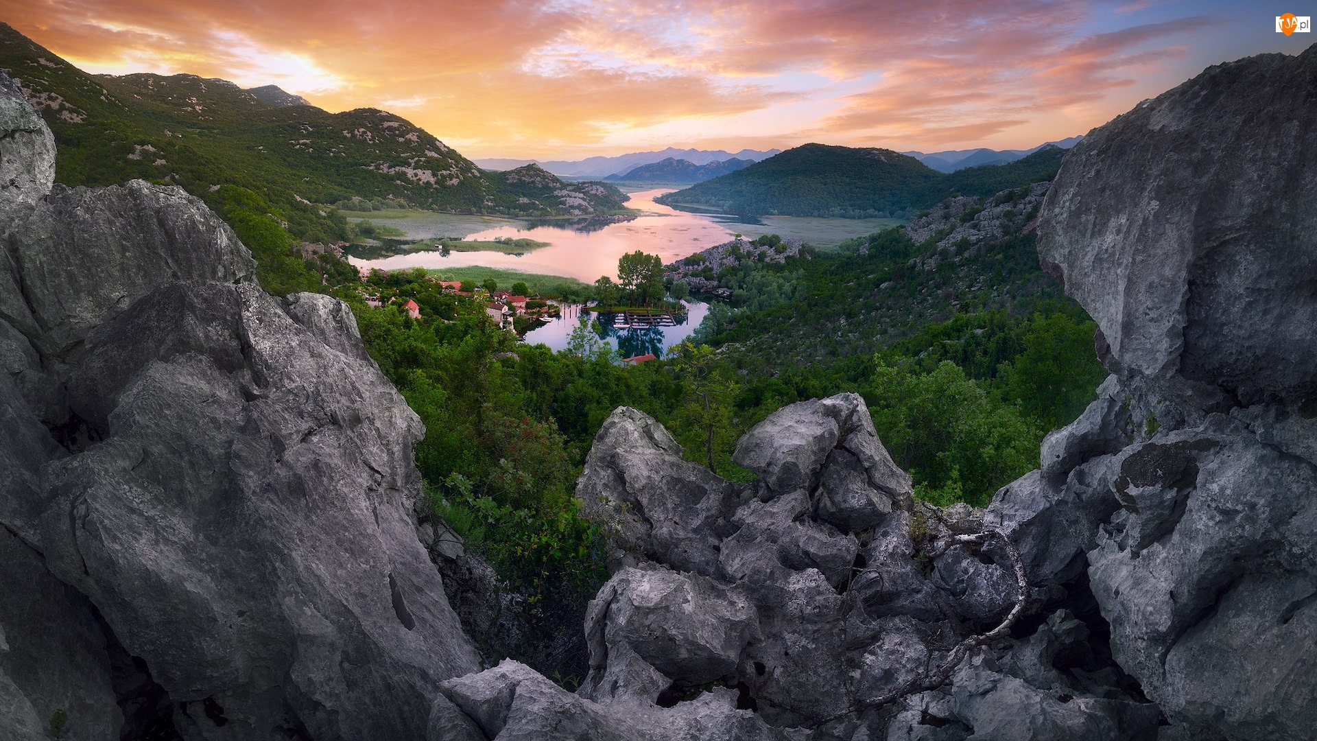 Skały, Jezioro Szkoderskie, Karuc, Czarnogóra, Drzewa