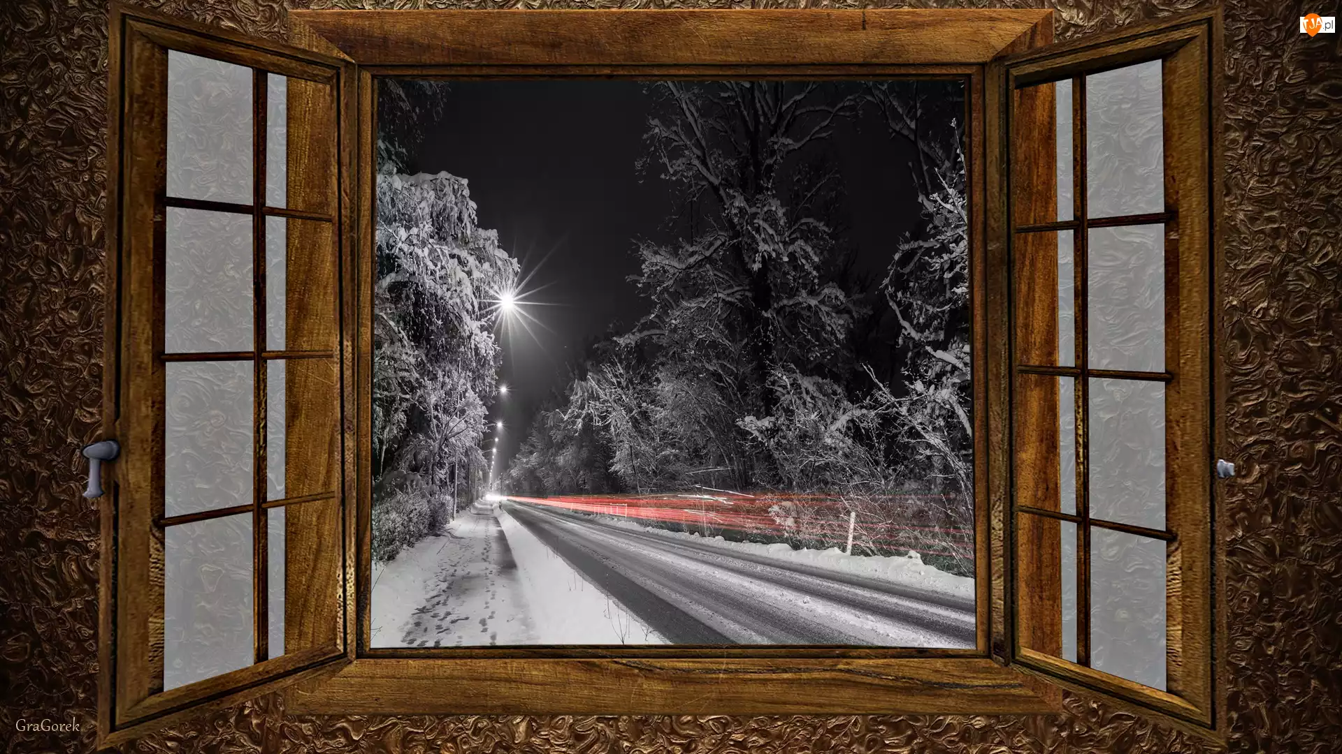 2D, Okno, Droga, Zima, Noc