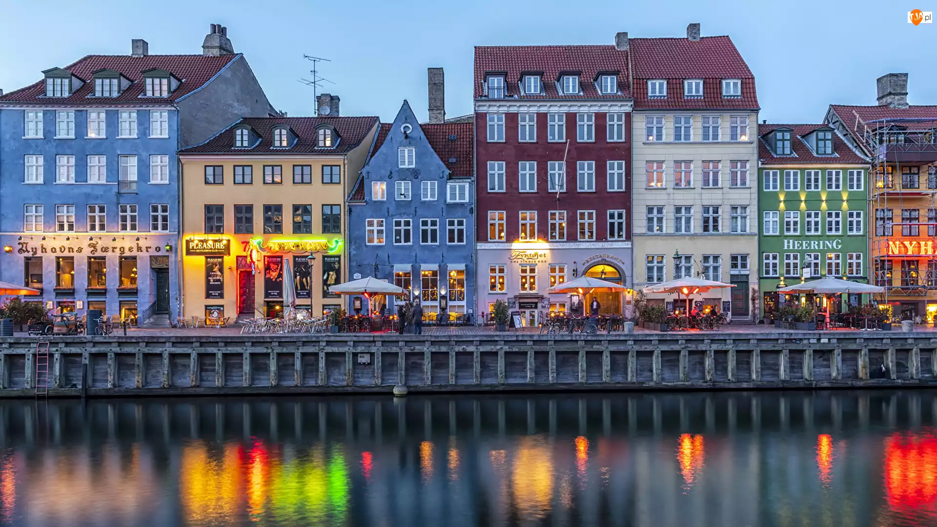 Domy, Wieczór, Kopenhaga, Dania, Kanał Nyhavn