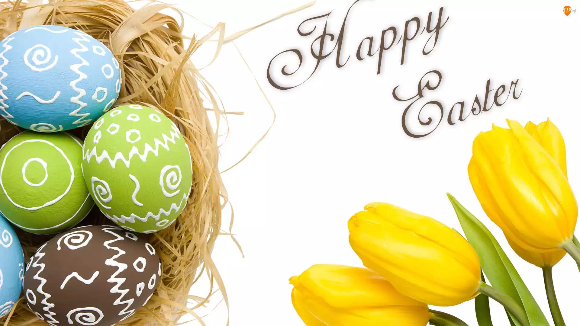 Wielkanoc, Gniazdko, Pisanki, Tulipany