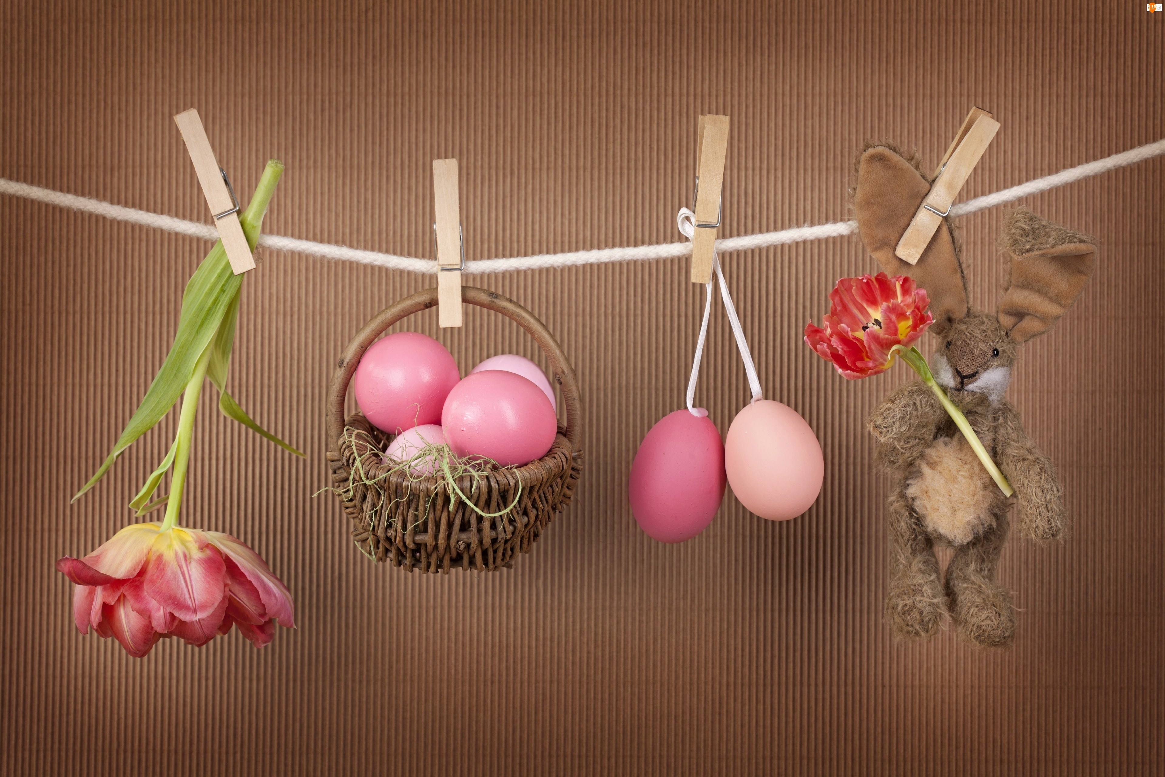 Wielkanoc, Kolorowe Jajka, Linka, Klamerki