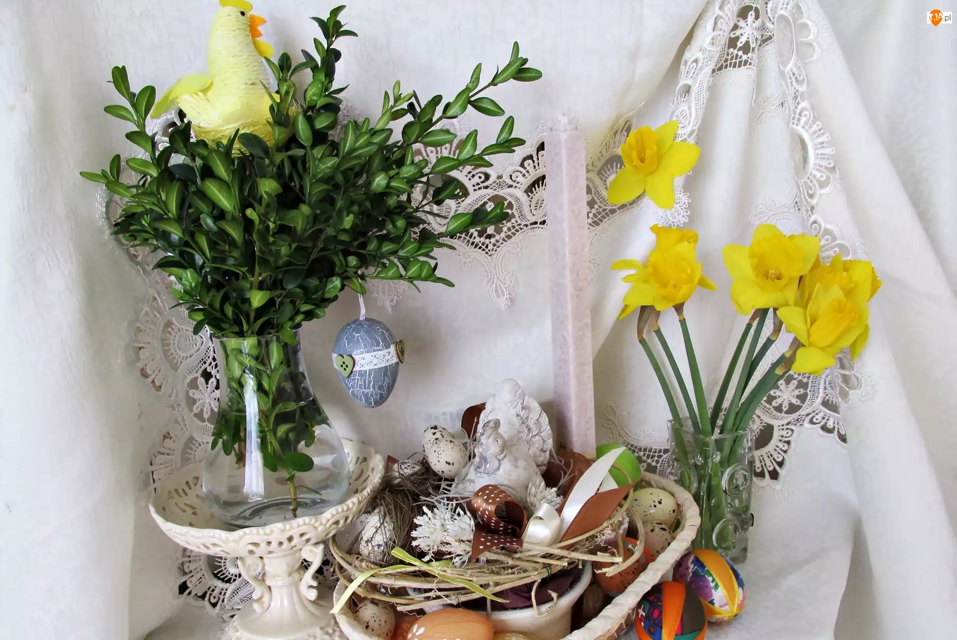 Wielkanoc, Kompozycja, Żonkile, Pisanki