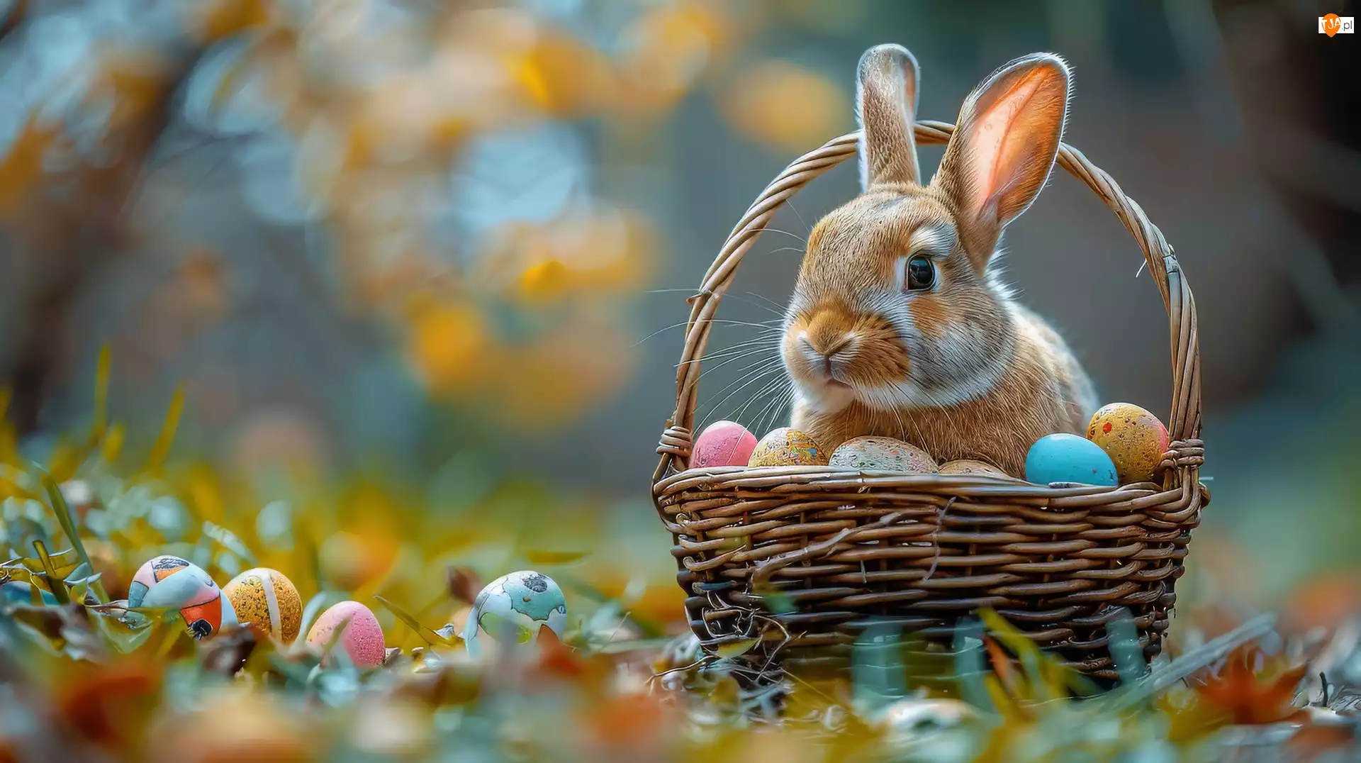 Wielkanoc, Królik, Koszyk, Pisanki