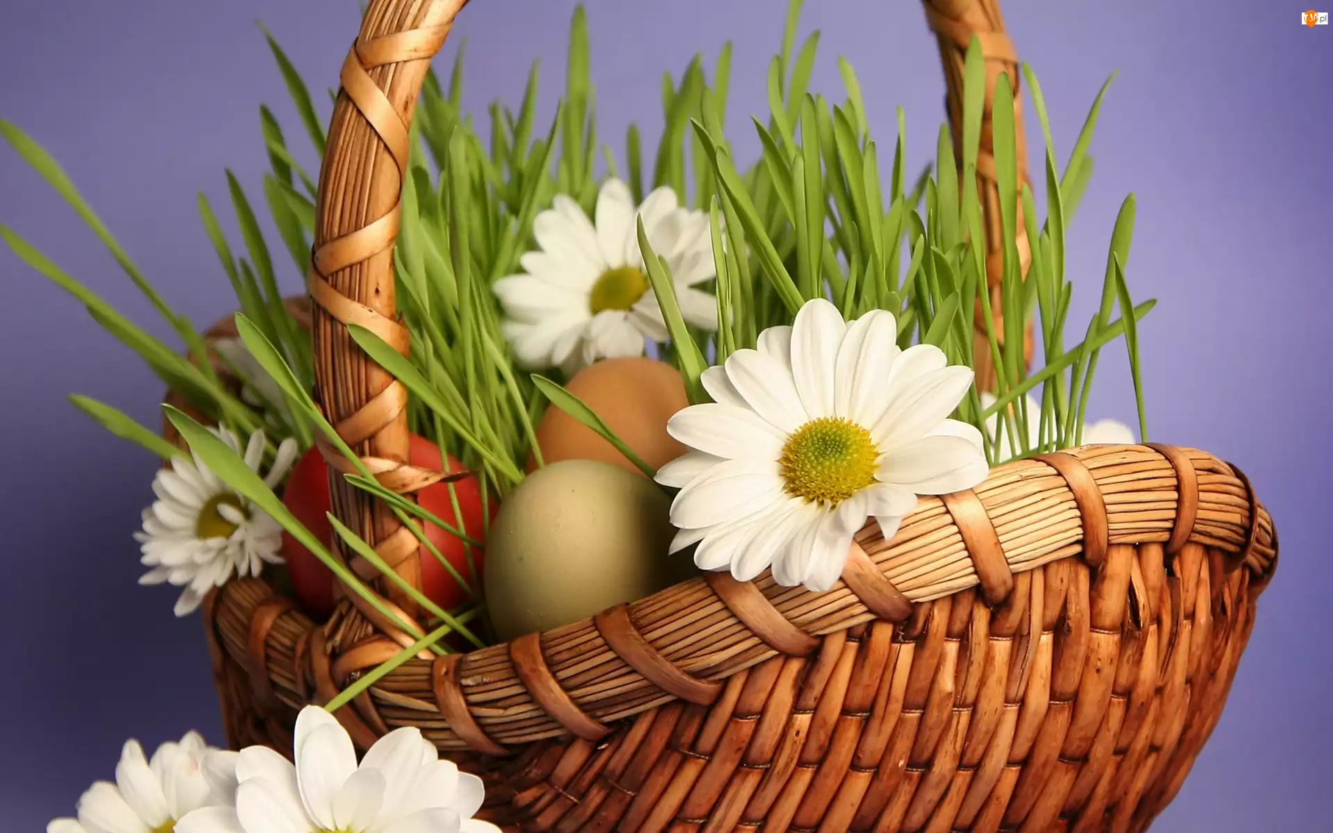 Wielkanoc, Margerytki, Koszyk, Jajka
