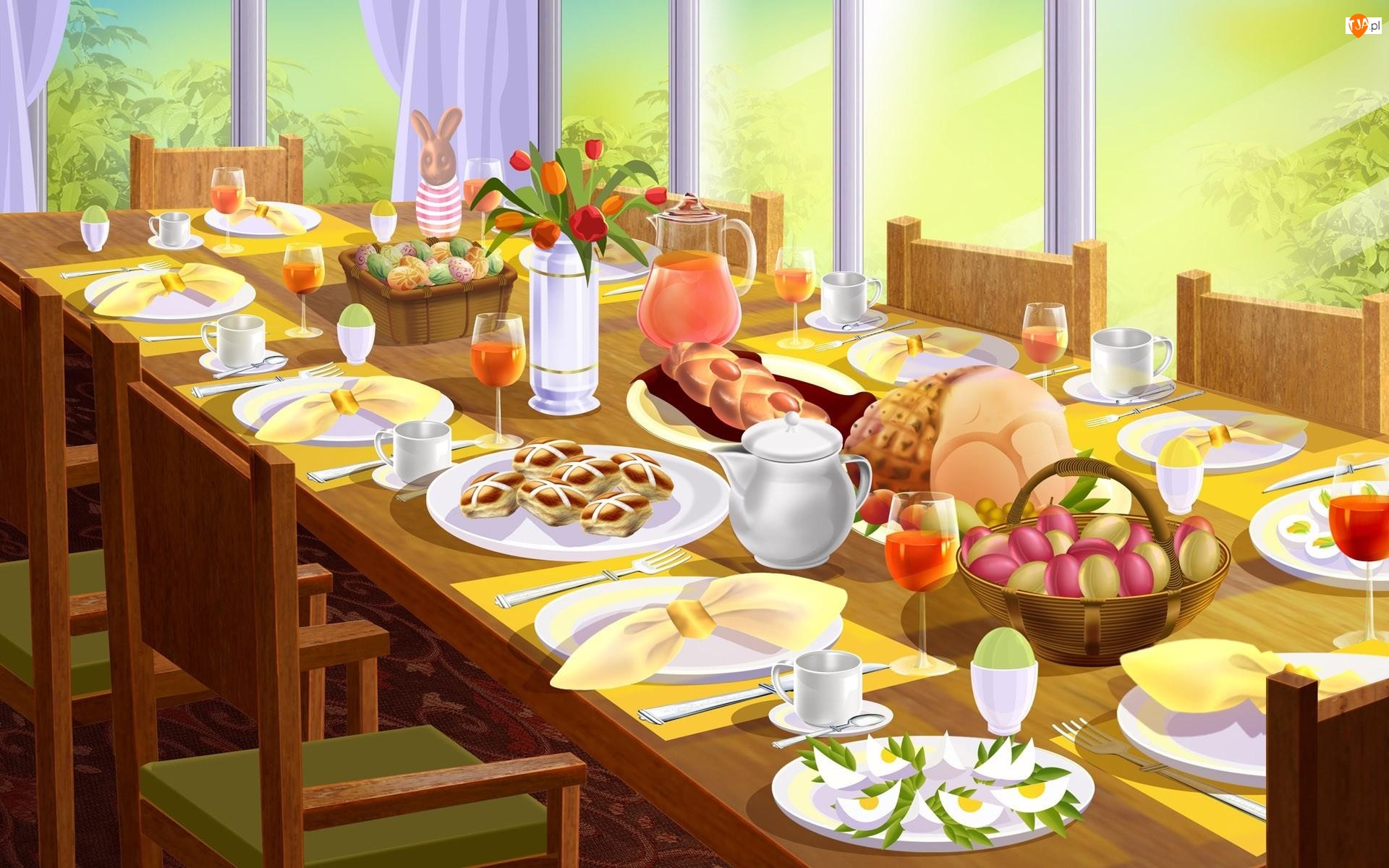 Potrawy, Wielkanoc, Śniadanie, Stół
