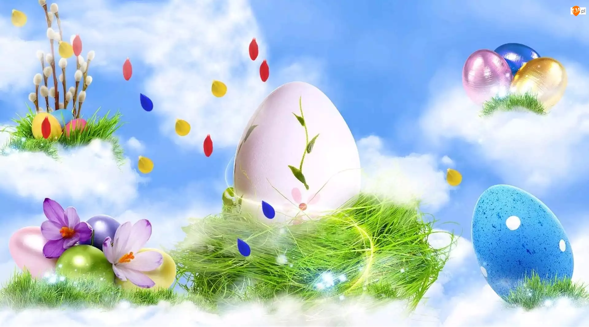 Wielkanoc, Wierzba, Pisanki, Krokusy