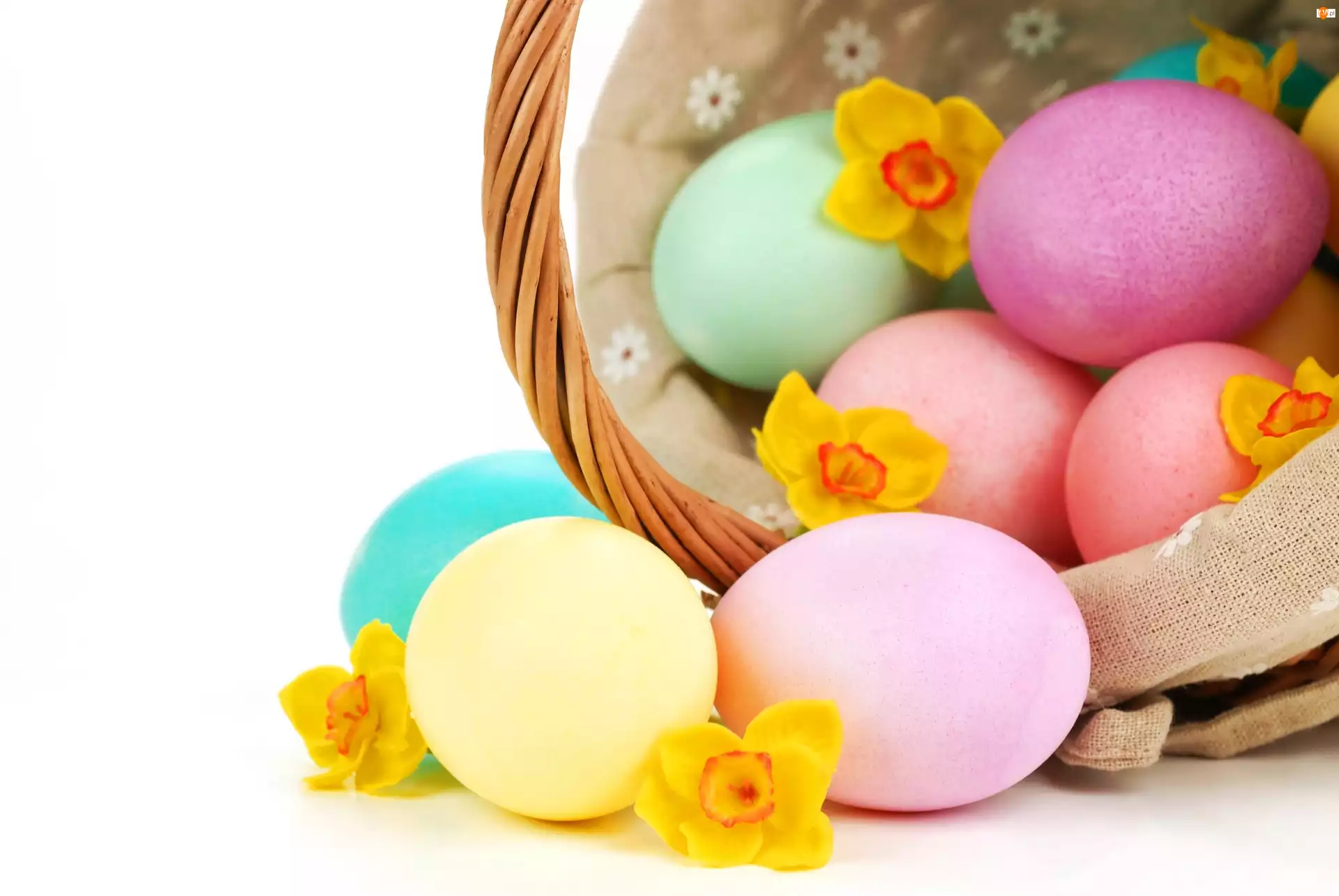 Wielkanoc, Żonkile, Koszyk, Jajka