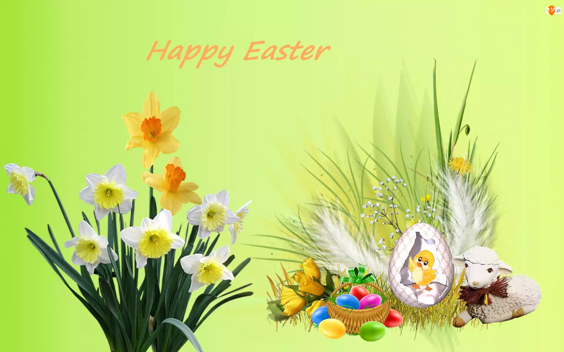 Wielkanoc, Żonkile, Pisanki, Baranek