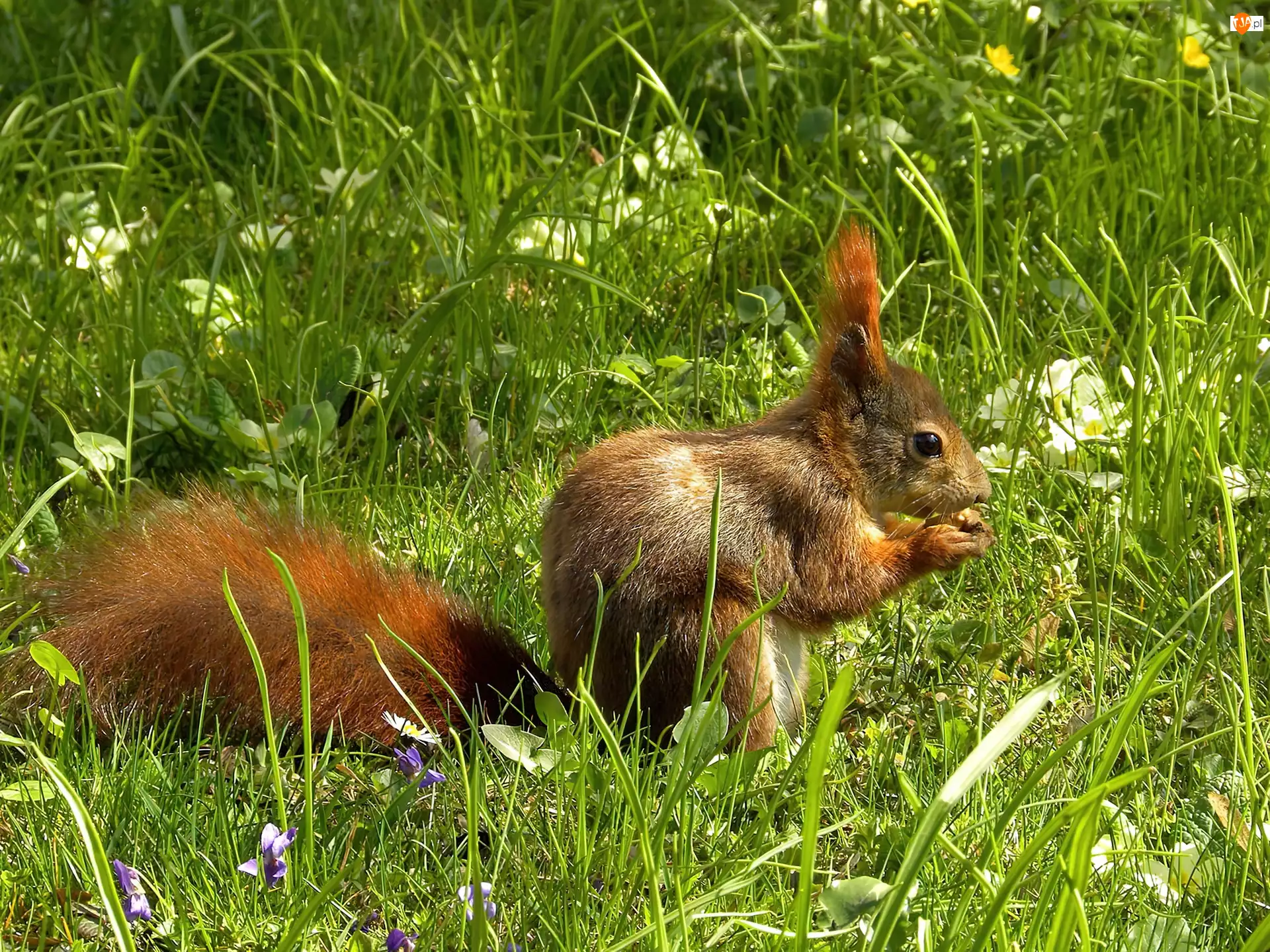 Łąka, Wiewiórka, Jedząca, Orzecha