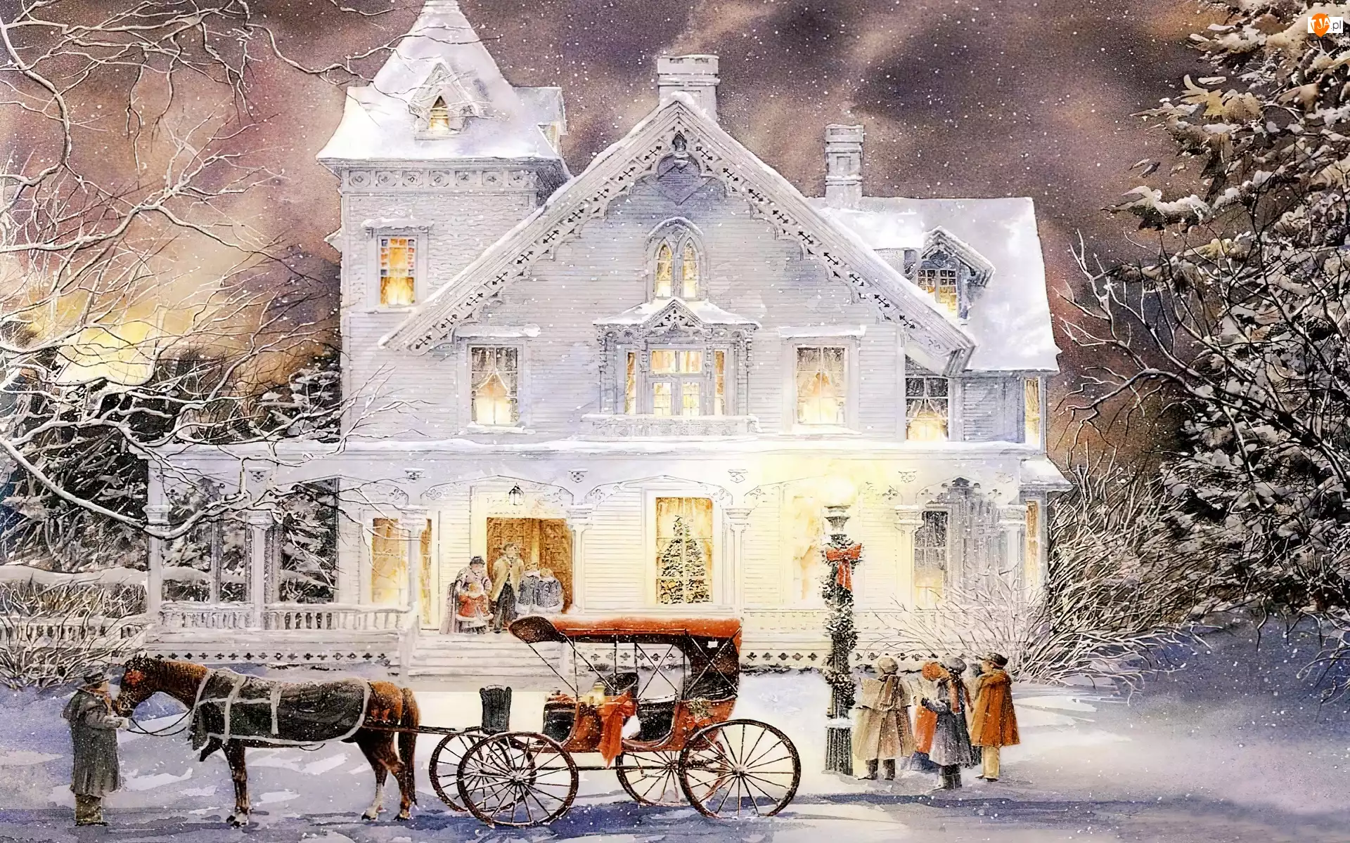 Willa, Zima, Dorożka, Ludzie