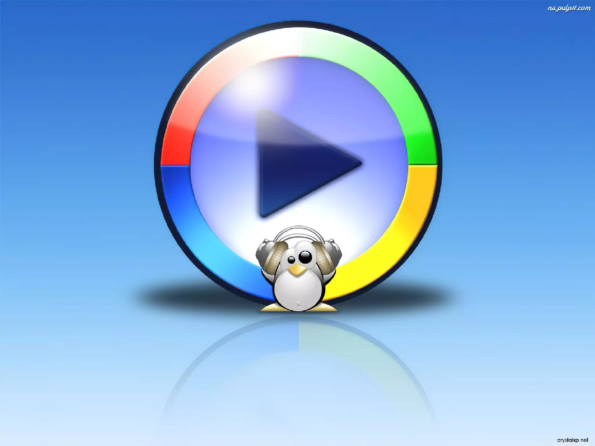 Windows Media Player, słuchawki, play, pingwin