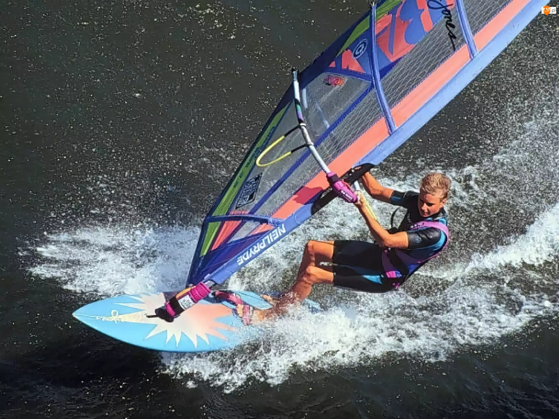 Windsurfing, morze, deska, żagiel